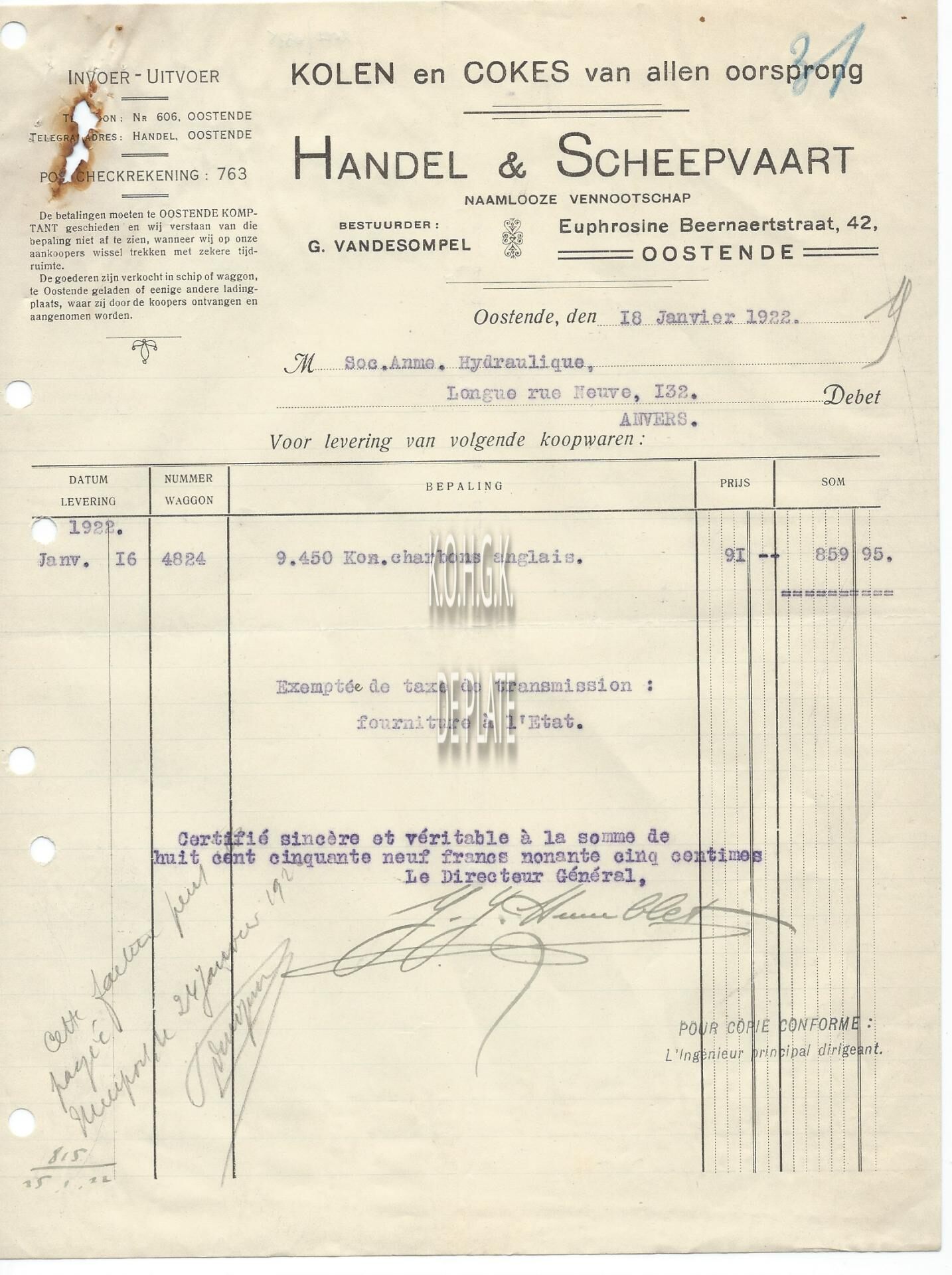 Omschrijving Bestuurder : G. Vandesompel. - Invoer en Uitvoer Trefwoorden HANDEL ; FACTUREN HANDEL EN SCHEEPVAART (KOLENHANDEL) VANDESOMPEL G. (HANDELAAR) HANDEL ; KOLEN EN ANDERE BRANDSTOFFEN EUPHROSINA BEERNAERTSTRAAT Plaatskenmerk ARCHIEF 110 ARCHIEFDOOS HANDEL Inventarisnummers 2022/0375 18/ 01/ 1922 Herkomst AANKOOP Print