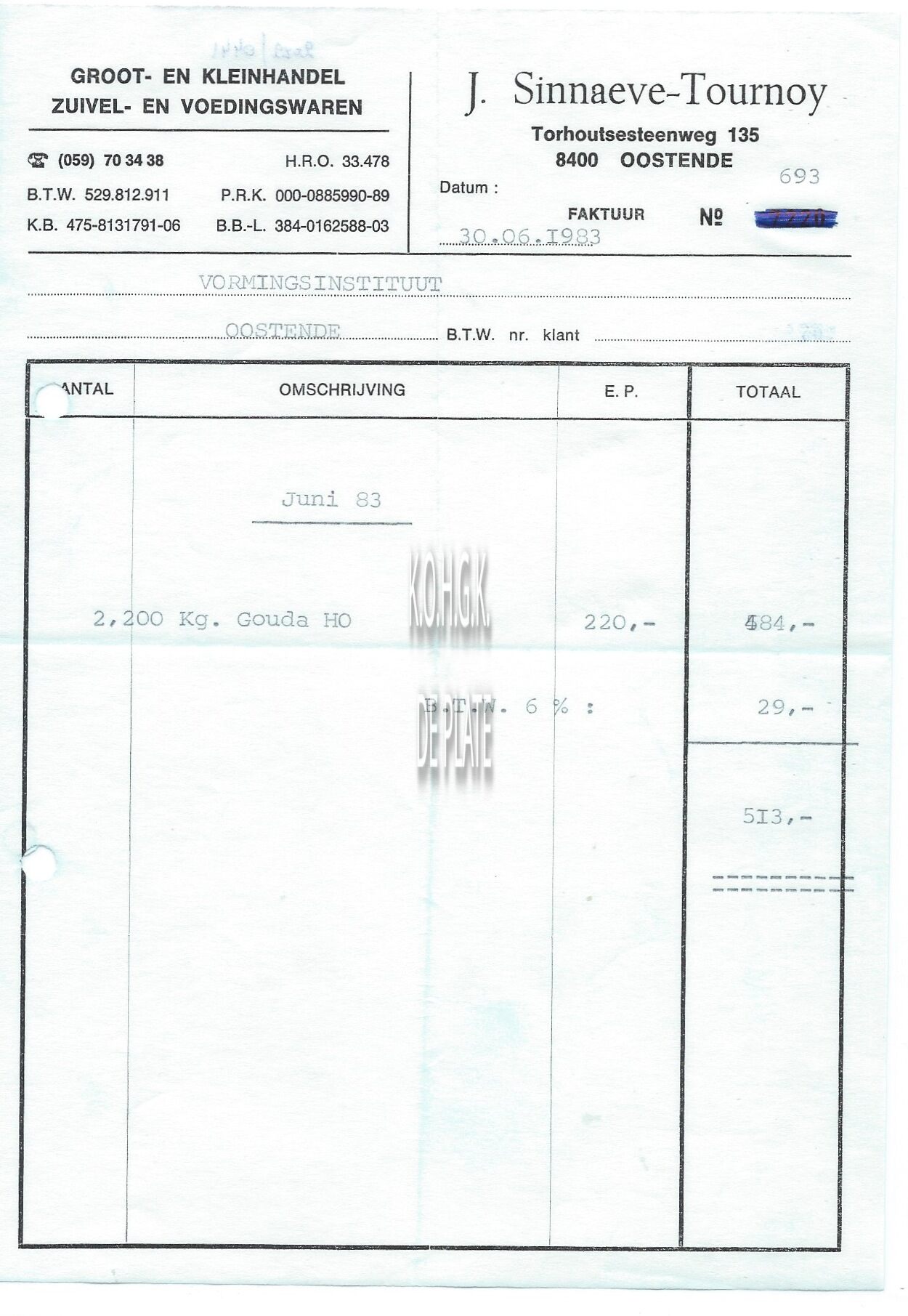 Trefwoorden HANDEL ; FACTUREN J. SINNAEVE-TOURNOY (GROOT- EN KLEINHANDEL ZUIVEL- EN VOEDINGSWAREN) TORHOUTSESTEENWEG Plaatskenmerk ARCHIEF 110 ARCHIEFDOOS HANDEL Inventarisnummers 2022/0441 30/ 06/ 1983 Herkomst AANKOOP Print