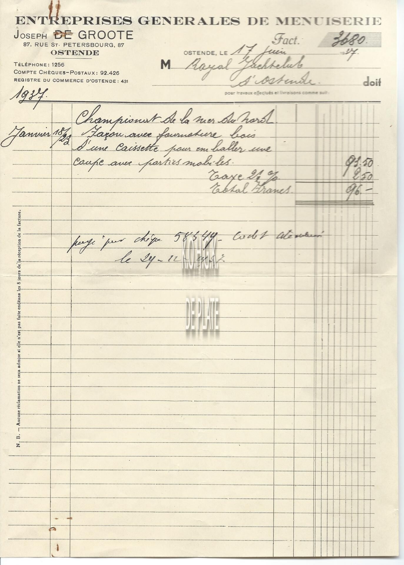 Omschrijving Entreprises générales de menuiserie Trefwoorden HANDEL ; FACTUREN JOSEPH DE GROOTE (SCHRIJNWERKERIJ) SINT-PETERBURGSTRAAT Plaatskenmerk ARCHIEF 110 ARCHIEFDOOS HANDEL Inventarisnummers 2022/2396 17/ 06/ 1937 Print
