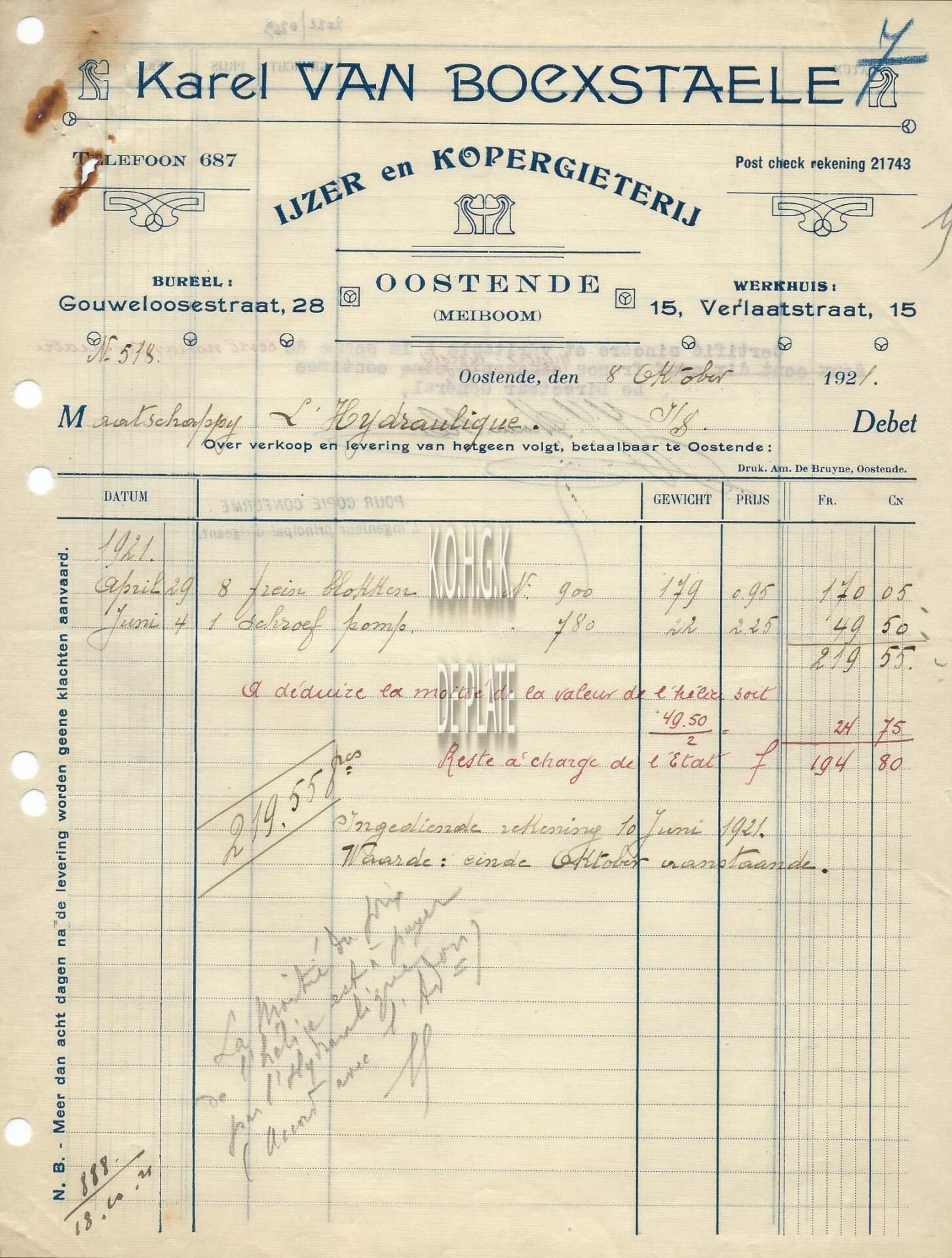 Trefwoorden HANDEL ; FACTUREN KAREL VAN BOCXSTAELE (IJZER- EN KOPERGIETERIJ) GOUWELOZESTRAAT VERLAATSTRAAT NIJVERHEID ; METAALBEDRIJVEN Plaatskenmerk ARCHIEF 110 ARCHIEFDOOS HANDEL Inventarisnummers 2022/0269 08/ 10/ 1921 Herkomst AANKOOP Vervaardiger Imp. Amedée De Bruyne Print