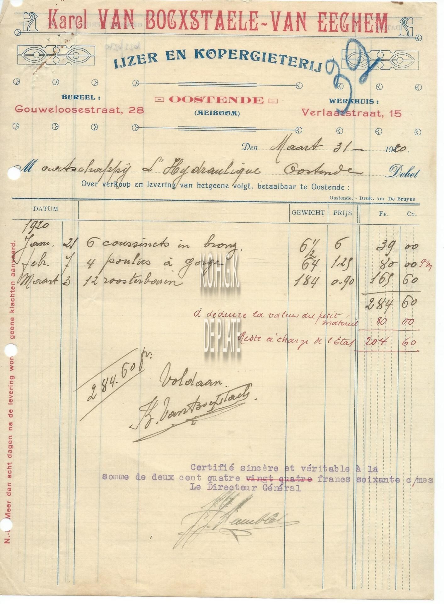 Trefwoorden HANDEL ; FACTUREN KAREL VAN BOCXSTAELE-VAN EEGHEM (IJZER- EN KOPERGIETERIJ) GOUWELOZESTRAAT VERLAATSTRAAT NIJVERHEID ; METAALBEDRIJVEN Plaatskenmerk ARCHIEF 110 ARCHIEFDOOS HANDEL Inventarisnummers 2022/0270 31/ 03/ 1920 Herkomst AANKOOP Vervaardiger Imp. Amedée De Bruyne Print