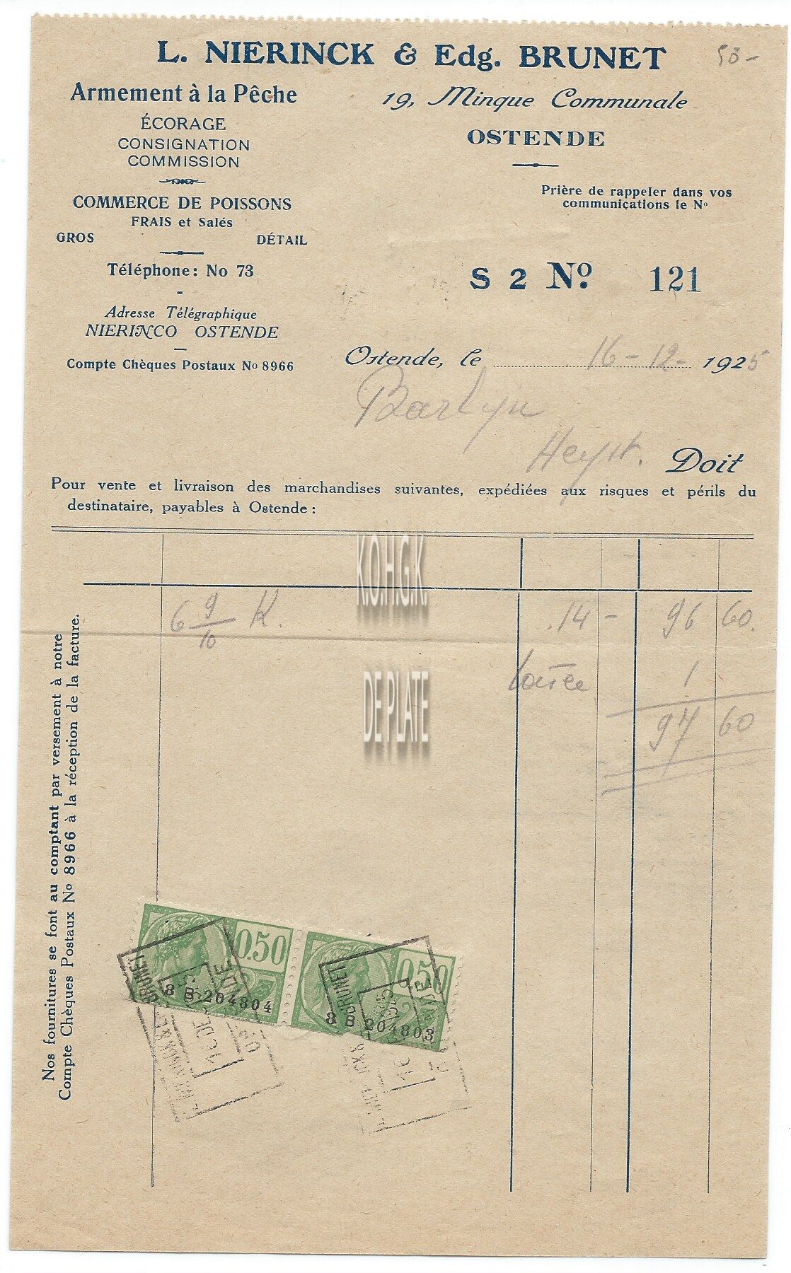 Trefwoorden HANDEL ; FACTUREN L. NIERINCK EN EDG. BRUNET (REDERIJ VISHANDEL ECOREURS) VISMIJN (1879-1938) (DE CIRK) ; BEDRIJVEN Plaatskenmerk ARCHIEF 110 ARCHIEFDOOS HANDEL Inventarisnummers 2022/0055 16/ 12/ 1925 Herkomst AANKOOP Print