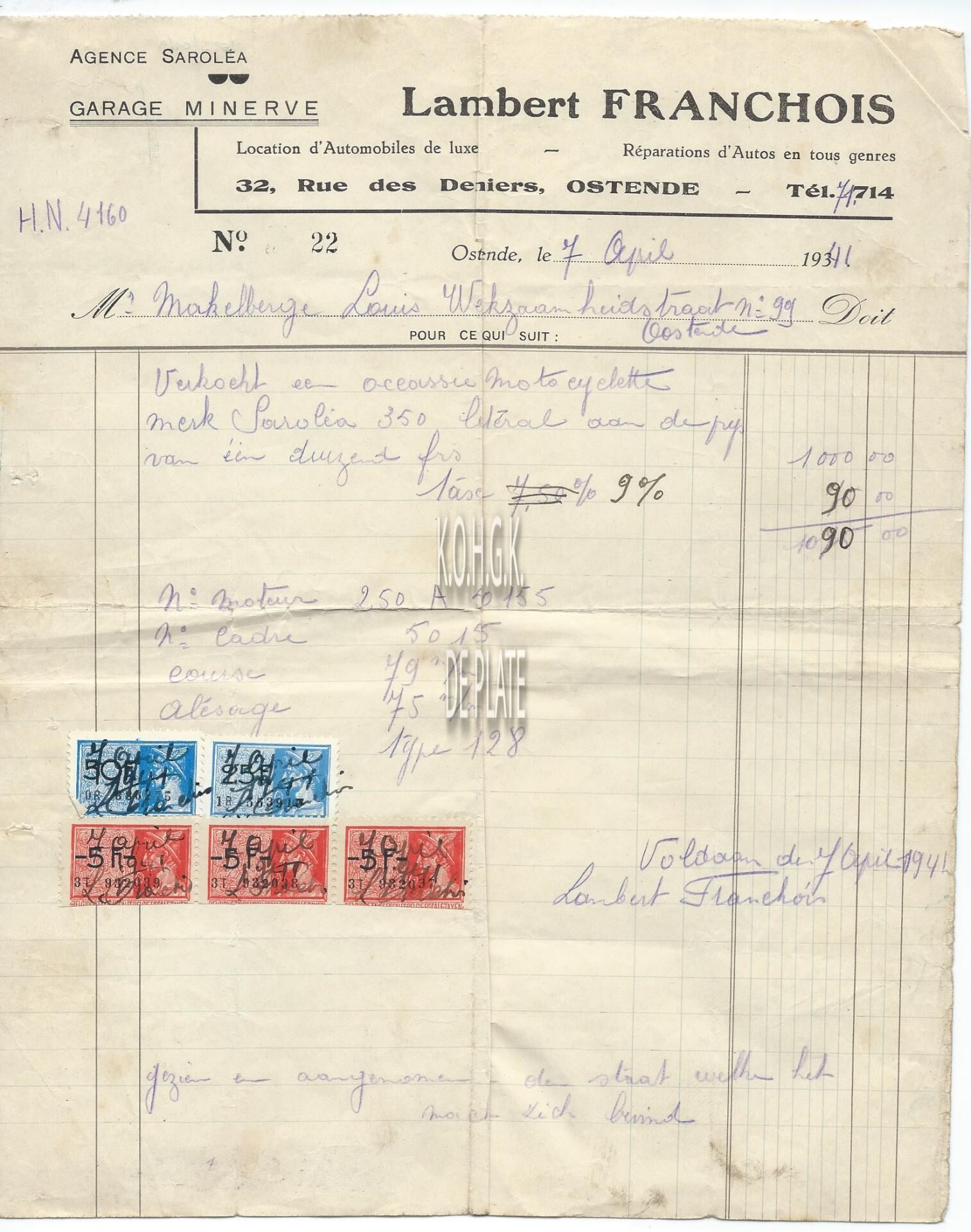 Omschrijving Agence Sarolea. - Belgisch merk van motor- en bromfietsen gevestigd te Luik Trefwoorden HANDEL ; FACTUREN GARAGE MINERVE (LAMBERT FRANCHOIS) VERVOER ; GARAGES STUIVERSTRAAT Plaatskenmerk ARCHIEF 110 ARCHIEFDOOS HANDEL Inventarisnummers 2022/0169 07/ 04/ 1941 Herkomst AANKOOP Print