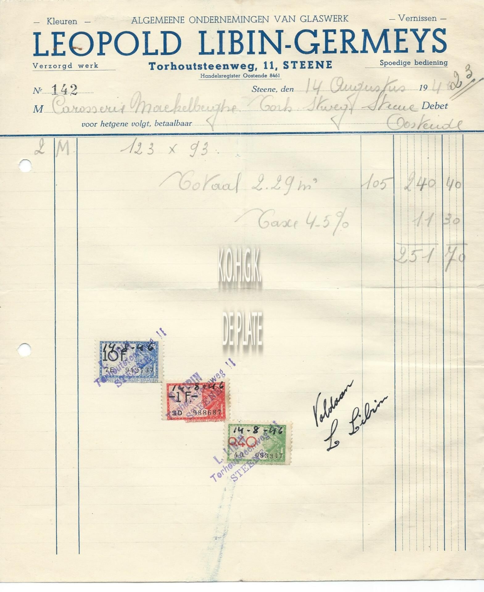 Trefwoorden HANDEL ; FACTUREN LEOPOLD LIBIN-GERMEYS (GLASHANDEL) TORHOUTSESTEENWEG Plaatskenmerk ARCHIEF 110 ARCHIEFDOOS HANDEL Inventarisnummers 2022/0114 14/ 08/ 1946 Herkomst AANKOOP Print