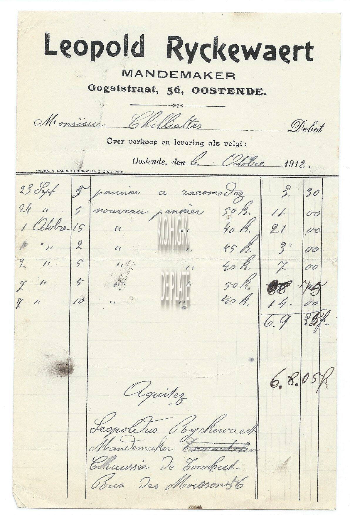 Omschrijving Oogstraat = Leeuwerikenstraat Trefwoorden HANDEL ; FACTUREN LEOPOLD RYCKEWAERT (MANDENMAKERIJ) MANDENMAKERS OOGSTSTRAAT (STENE) Plaatskenmerk ARCHIEF 110 ARCHIEFDOOS HANDEL Inventarisnummers 2022/0340 10/ 1912 Herkomst AANKOOP Print