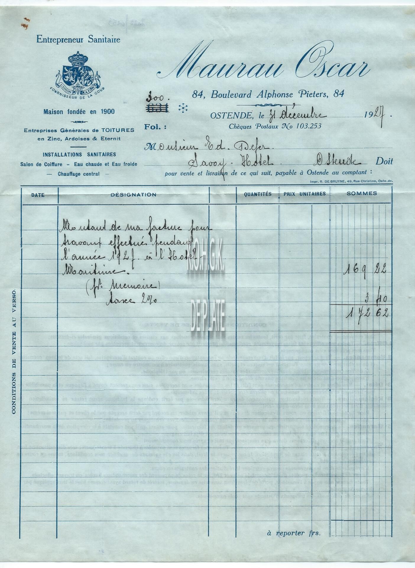 Omschrijving Gesticht in 1900. Trefwoorden HANDEL ; FACTUREN MAURAU OSCAR (SANITAIR) ALFONS PIETERSLAAN HOFLEVERANCIERS Plaatskenmerk ARCHIEF 110 ARCHIEFDOOS HANDEL Inventarisnummers 2022/0153 31/ 12/ 1927 Herkomst AANKOOP Print