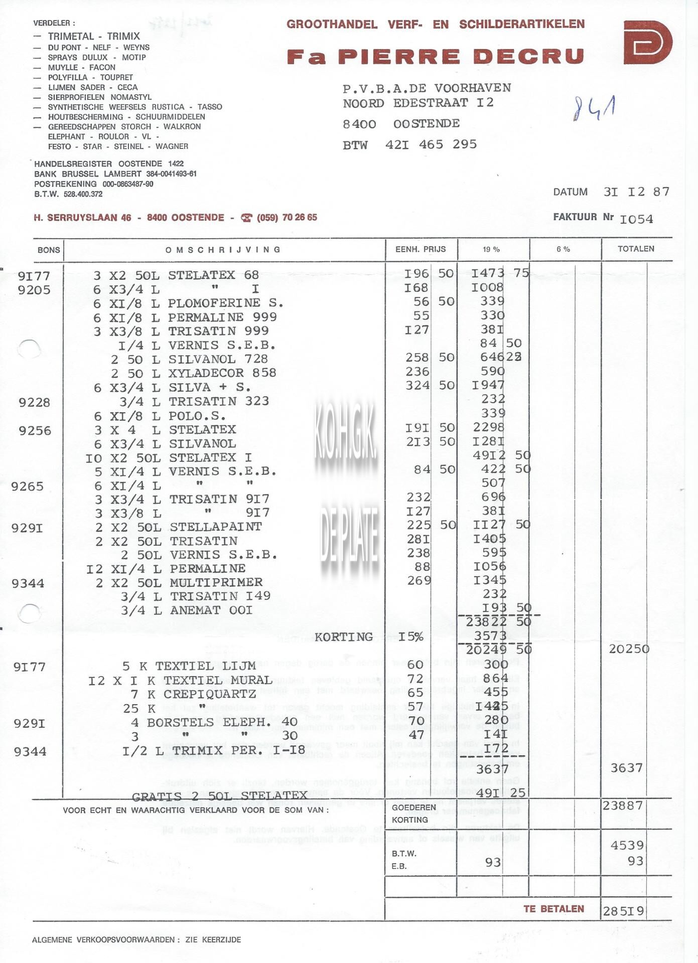 Trefwoorden HANDEL ; FACTUREN DECRU PIERRE (GROOTHANDEL IN SCHILDERSARTIKELEN) HENDRIK SERRUYSLAAN Plaatskenmerk ARCHIEF 110 ARCHIEFDOOS HANDEL Inventarisnummers 2022/2287 31/ 12/ 1987 Herkomst COULIER L. Print