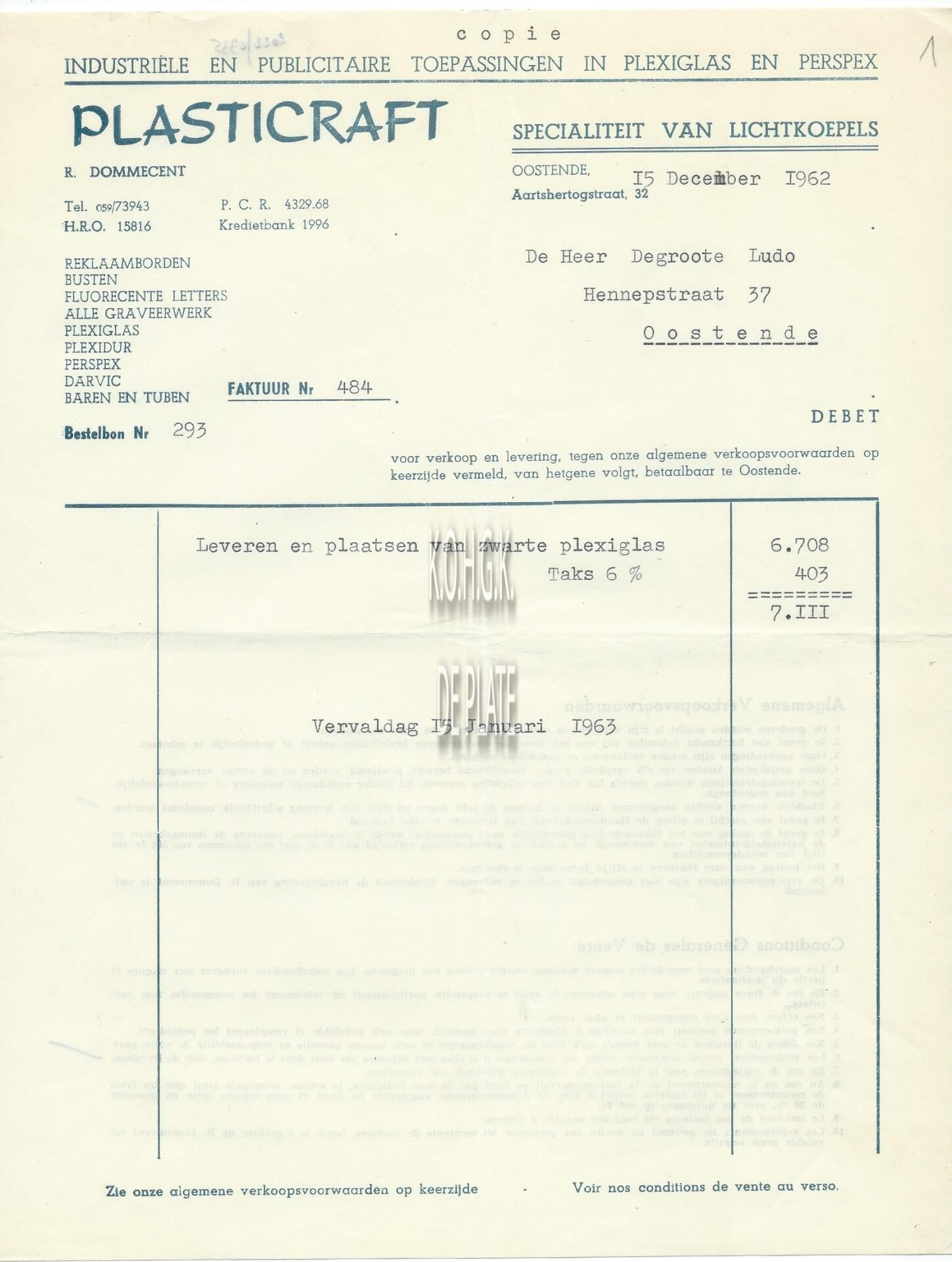 R. Dommecent (bedrijfsleider). - Reklaamborden - Busten - Fluorecente letters - Alle graveerwerk - Plexiglas - Plexidur - Perspex - Darvic - Baren en tuben