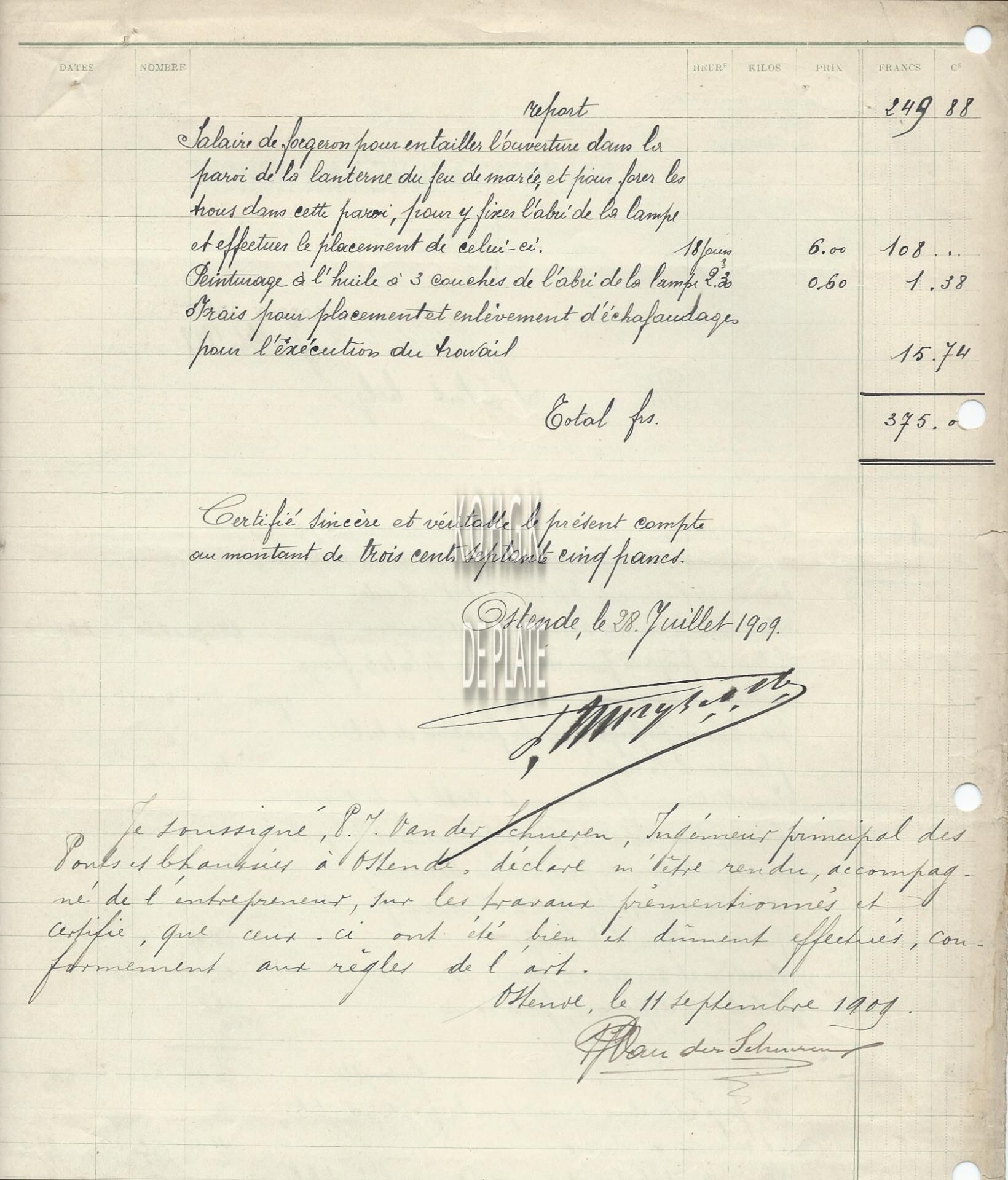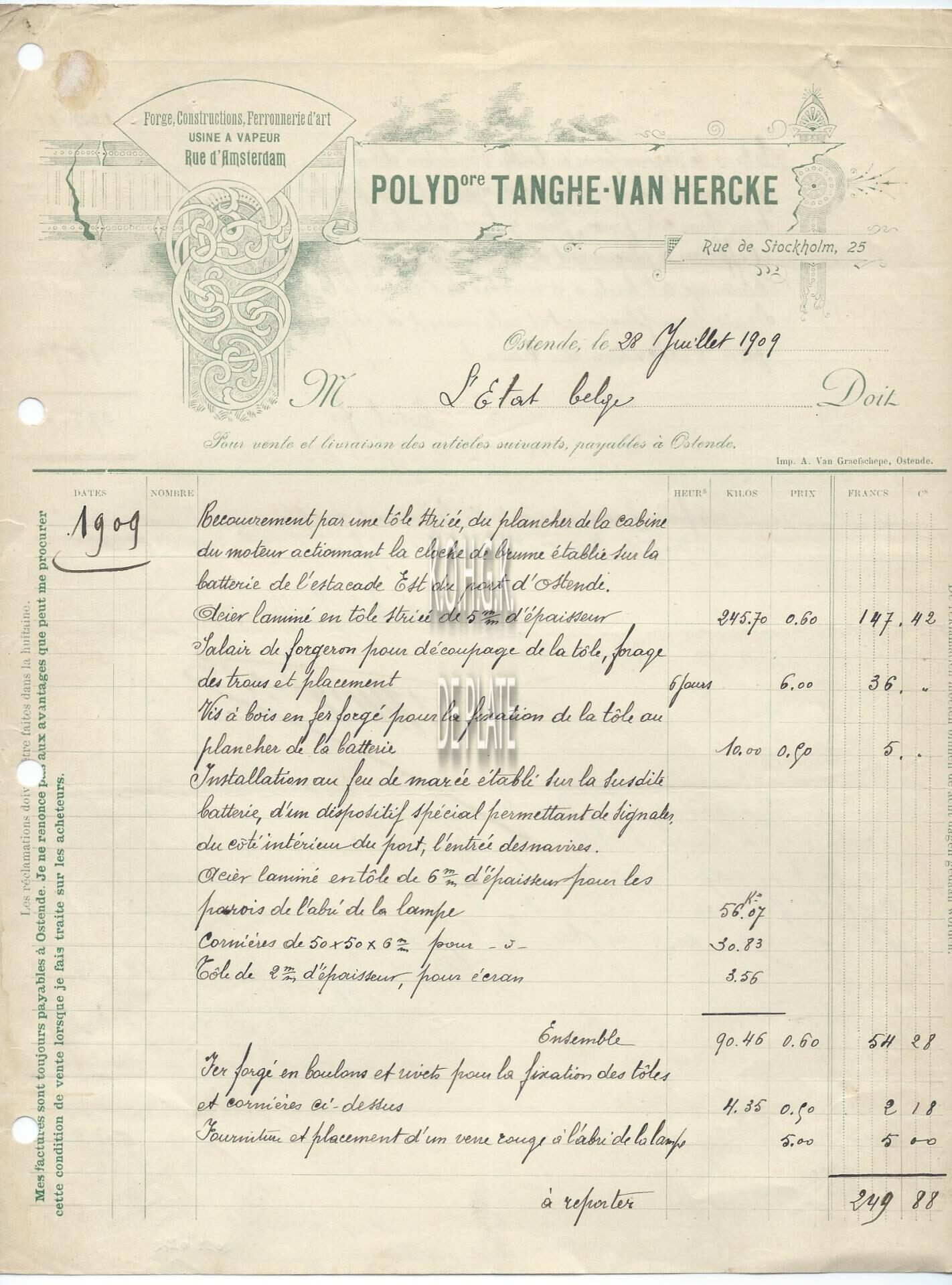 Factuur : Polydore Tanghe-Van Hercke. Smederij. Stockholmstraat 25 en Amsterdamstraat, Oostende