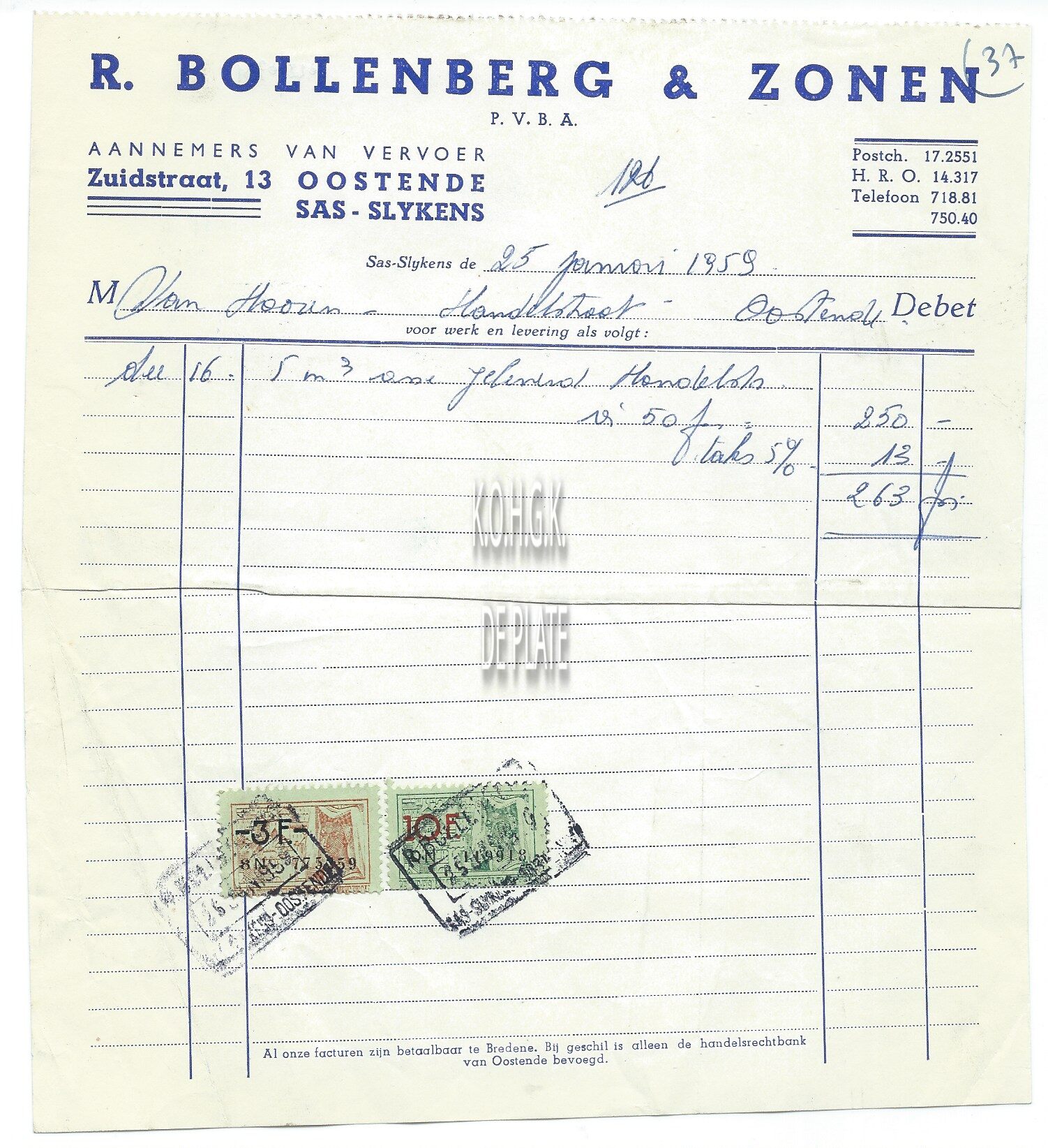 Trefwoorden HANDEL ; FACTUREN R. BOLLENBERG EN ZONEN (VERVOER) ZUIDSTRAAT (BREDENE) NIJVERHEID ; BREDENE Plaatskenmerk ARCHIEF 110 ARCHIEFDOOS HANDEL Inventarisnummers 2022/0391 25/ 01/ 1959 Herkomst AANKOOP Print