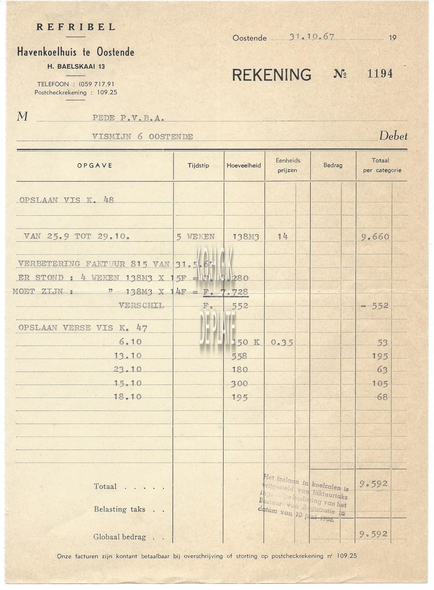 Trefwoorden HANDEL ; FACTUREN REFRIBEL (KOELHUIS) HENDRIK BAELSKAAI Plaatskenmerk ARCHIEF 110 ARCHIEFDOOS HANDEL Inventarisnummers 2022/0054 31/ 10/ 1967 Herkomst AANKOOP Print