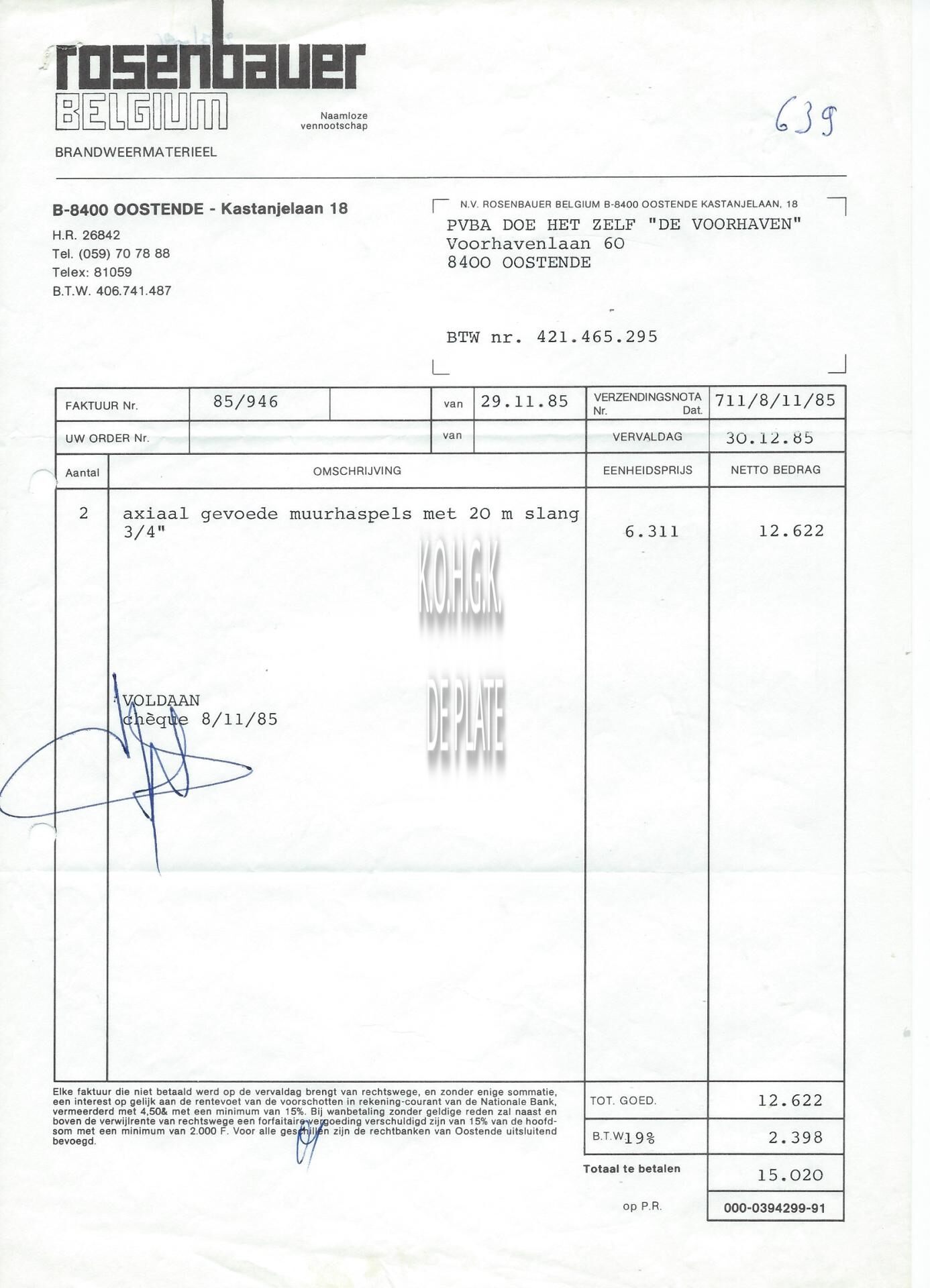 Trefwoorden HANDEL ; FACTUREN ROSENBAUER BELGIUM (BRANDWEERMATERIEEL) KASTANJELAAN Plaatskenmerk ARCHIEF 110 ARCHIEFDOOS HANDEL Inventarisnummers 2017/0086 29/ 11/ 1985 Print