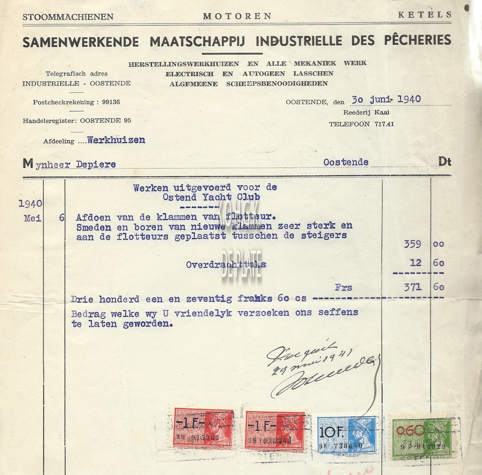 Trefwoorden HANDEL ; FACTUREN IDP (INDUSTRIELLE DES PÊCHERIES) (SCHEEPSWERF) (SCHEEPSUITRUSTINGEN) REDERIJKAAI Plaatskenmerk ARCHIEF 110 ARCHIEFDOOS HANDEL Inventarisnummers 1963/1148 30/ 06/ 1940 Print