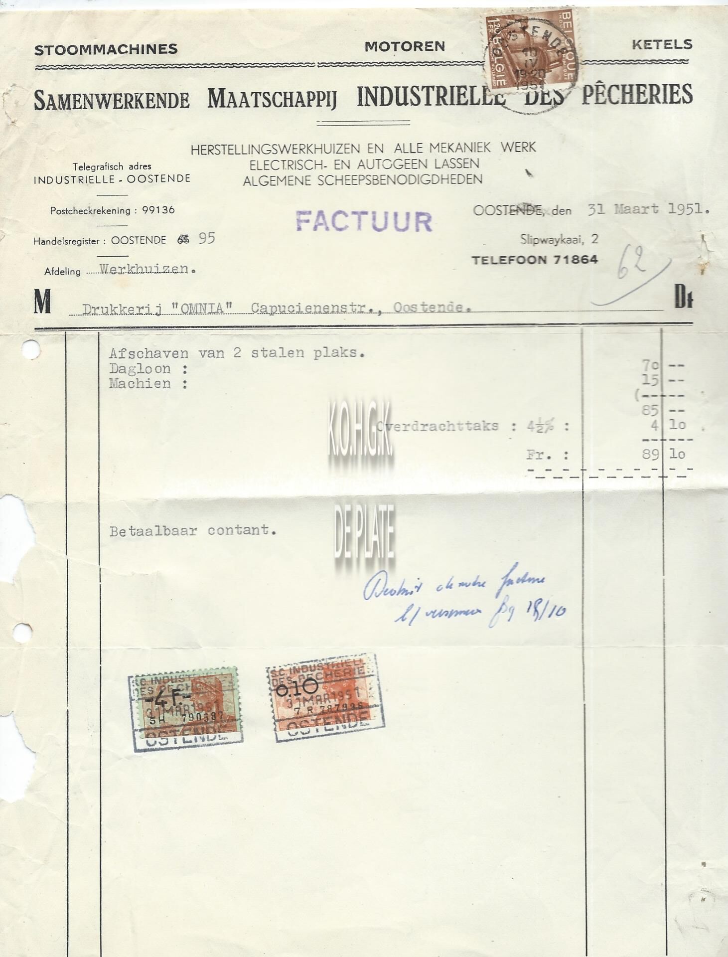 Herstellingswerkhuizen en alle mekaniek werk - Electrisch- en autogeen lassen. Algemene scheepsbenodigdheden