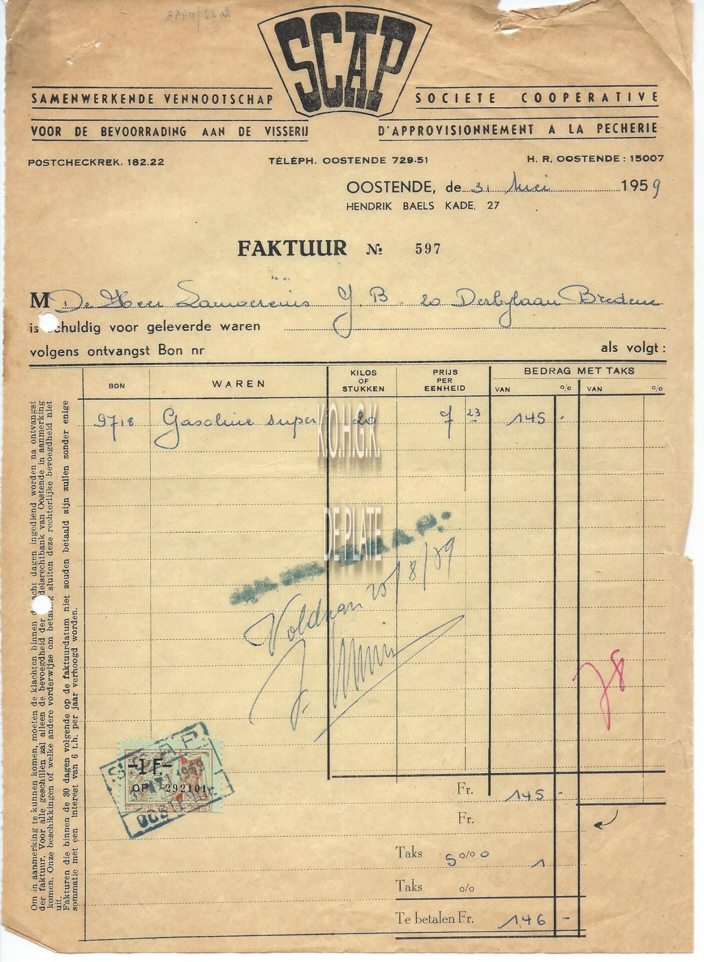 Trefwoorden HANDEL ; FACTUREN SCAP (REDERSCOÖPERATIEVE) (BEROEPSVERENIGING) HENDRIK BAELSKAAI Plaatskenmerk ARCHIEF 110 ARCHIEFDOOS HANDEL Inventarisnummers 2022/0493 31/ 05/ 1959 Herkomst AANKOOP Print