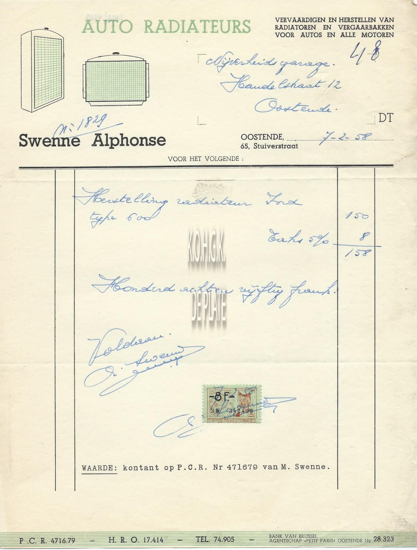 Trefwoorden HANDEL ; FACTUREN SWENNE ALPHONSE (AUTO ONDERDELEN) HANDEL ; AUTO ONDERDELEN STUIVERSTRAAT Plaatskenmerk ARCHIEF 110 ARCHIEFDOOS HANDEL Inventarisnummers 2022/0228 07/ 02/ 1958 Herkomst AANKOOP Print