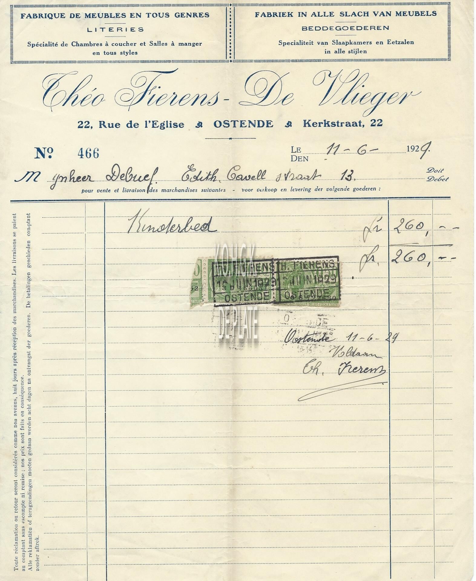 Trefwoorden HANDEL ; FACTUREN THÉO FIERENS-DE VLIEGER (MEUBELHANDEL) KERKSTRAAT Plaatskenmerk ARCHIEF 110 ARCHIEFDOOS HANDEL Inventarisnummers 2014/4452 11/ 06/ 1929 Herkomst HOSTYN NORBERT Print