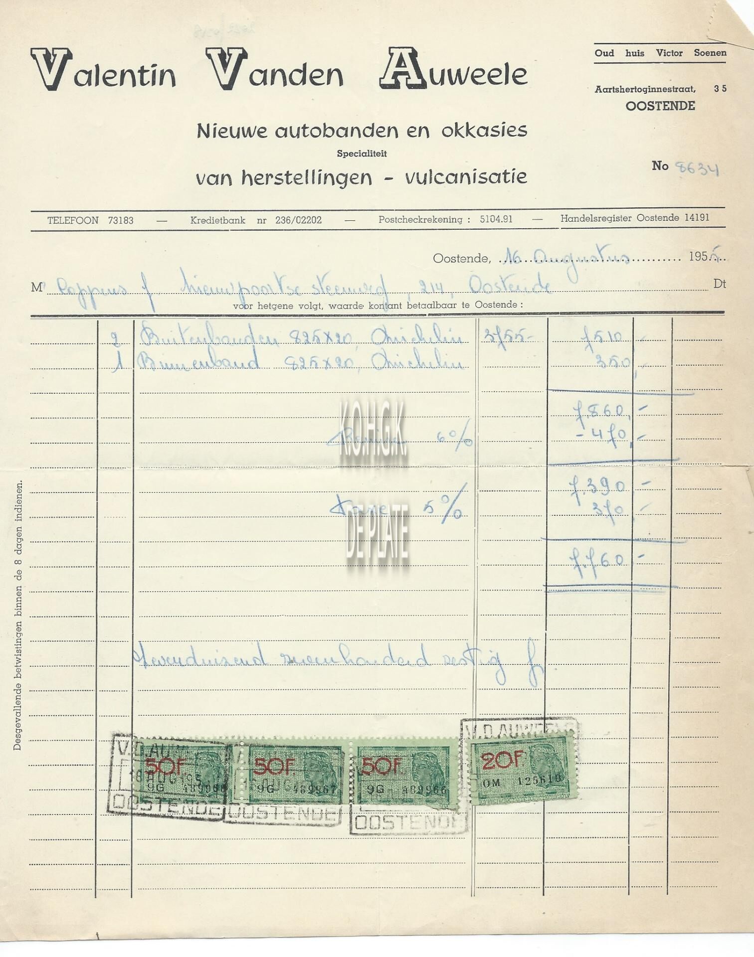 Omschrijving Oud huis Victor Soenen Trefwoorden HANDEL ; FACTUREN VALENTIN VANDEN AUWEELE (AUTOBANDEN) HANDEL ; AUTOBANDEN AARTSHERTOGINNESTRAAT Plaatskenmerk ARCHIEF 110 ARCHIEFDOOS HANDEL Inventarisnummers 2022/0218 10/ 08/ 1955 Herkomst AANKOOP Print
