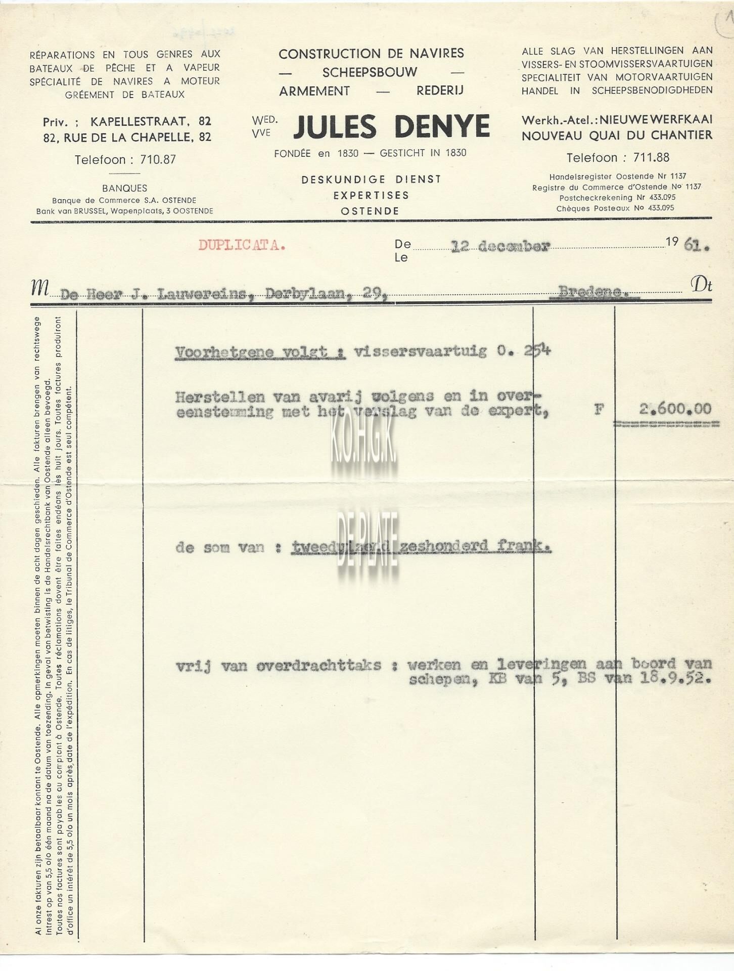 Gesticht in 1830. - Alle slag van herstellingen aaan vissers- en stoomvissersvaartuigen. Specialiteit van motorvaartuigen. Handel in scheepsbenodigdheden.