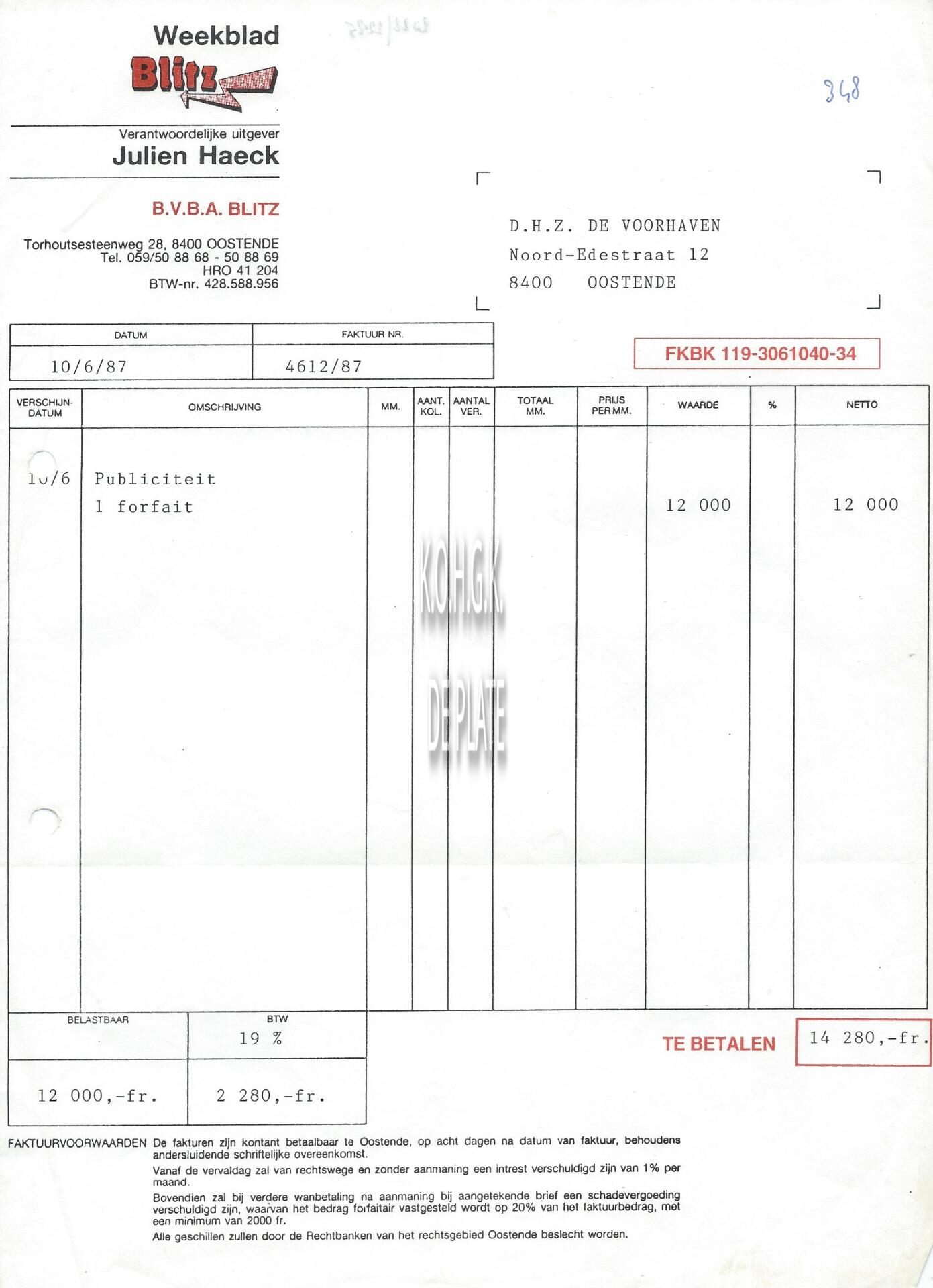 Omschrijving Verantwoordelijke uitgever : Julien Haeck Trefwoorden HANDEL ; FACTUREN WEEKBLAD BLITZ (RECLAMEBLAD) RECLAMEBLADEN HAECK JULIEN (UITGEVER) TORHOUTSESTEENWEG Plaatskenmerk ARCHIEF 110 ARCHIEFDOOS HANDEL Inventarisnummers 2022/2285 10/ 06/ 1987 Herkomst COULIER L. Print