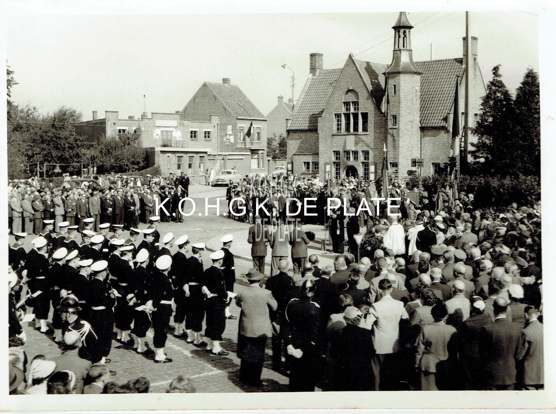 Formaat : 13 x 18 cm. - Inhuldiging van het gedenkteken van het 23ste Linieregiment te Houthulst, 23 september 1956 door de Broederbond der Oudstrijders van de 3de en 23ste Linieregimenten 1914-1918. - Inauguration du Monument du 23e Régiment de Ligne  à Houthulst le 23 septembre 1956 par la Fraternelle des Anciens Combattants du 3e et 23e Régiments de Ligne 1914-1918