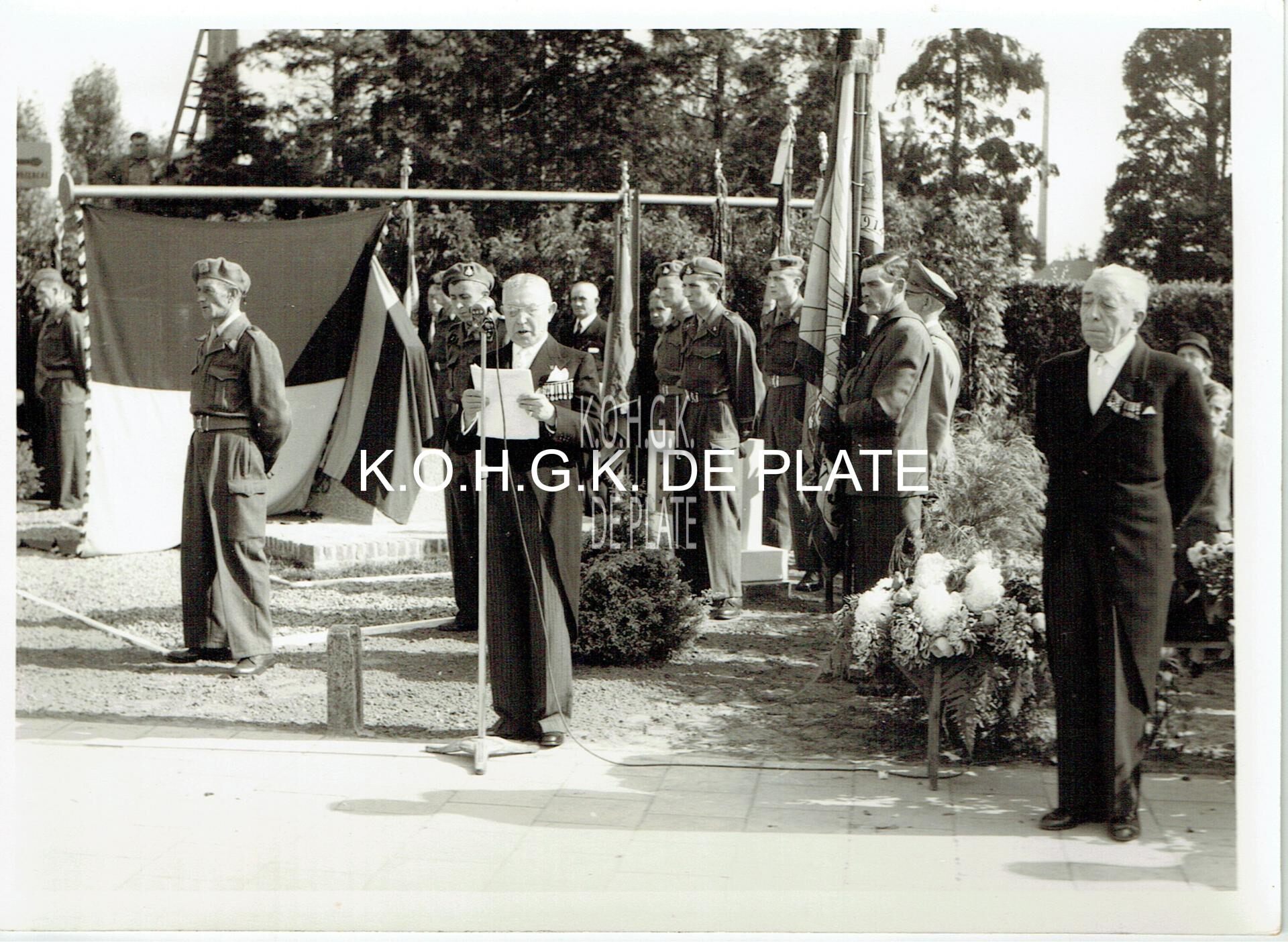 Formaat : 13 x 18 cm. - Inhuldiging van het gedenkteken van het 23ste Linieregiment te Houthulst, 23 september 1956 door de Broederbond der Oudstrijders van de 3de en 23ste Linieregimenten 1914-1918. - Inauguration du Monument du 23e Régiment de Ligne à Houthulst le 23 septembre 1956 par la Fraternelle des Anciens Combattants du 3e et 23e Régiments de Ligne 1914-1918