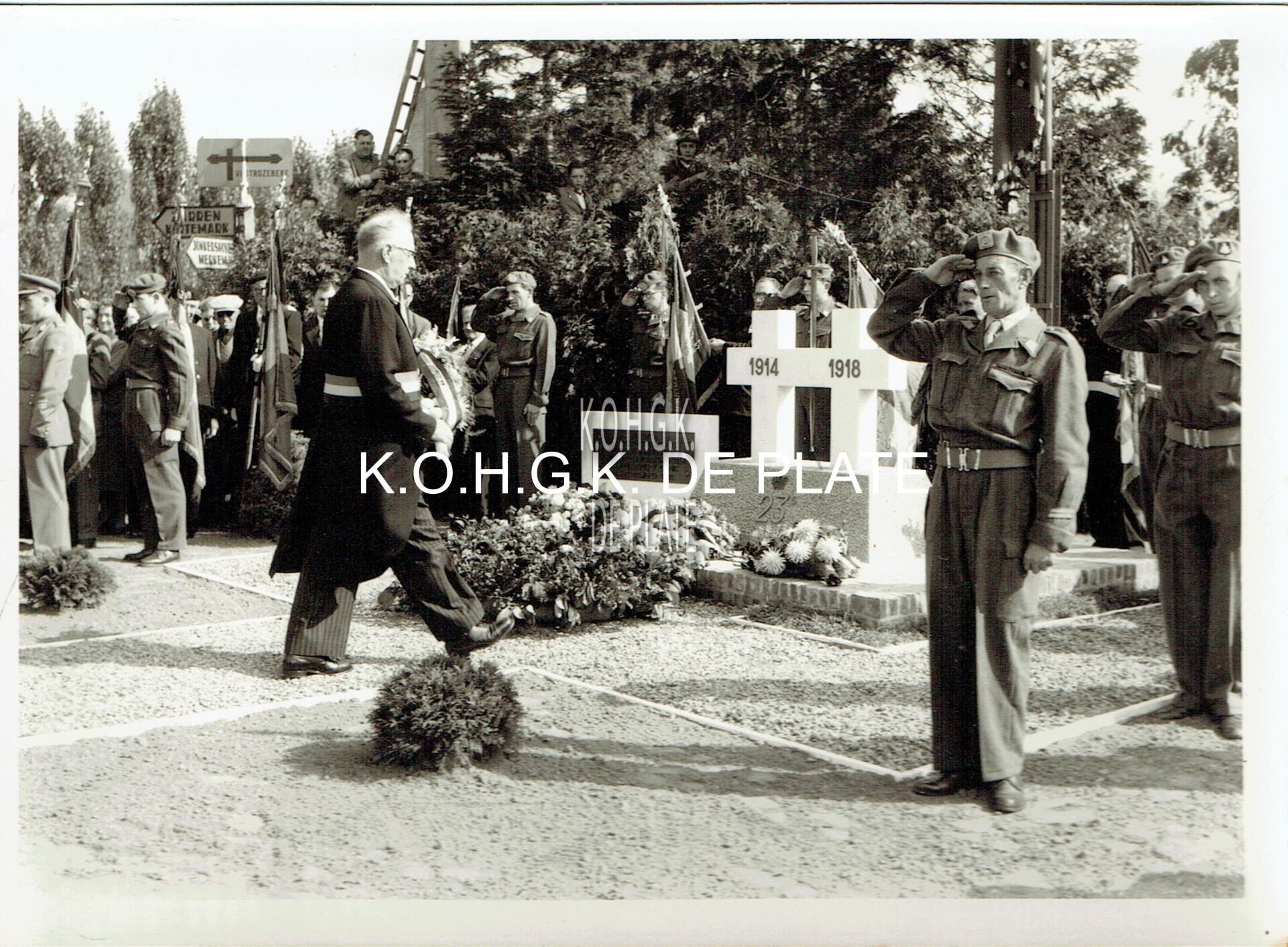 Formaat : 13 x 18 cm. - Inhuldiging van het gedenkteken van het 23ste Linieregiment te Houthulst, 23 september 1956 door de Broederbond der Oudstrijders van de 3de en 23ste Linieregimenten 1914-1918. - Inauguration du Monument du 23e Régiment de Ligne à Houthulst le 23 septembre 1956 par la Fraternelle des Anciens Combattants du 3e et 23e Régiments de Ligne 1914-1918