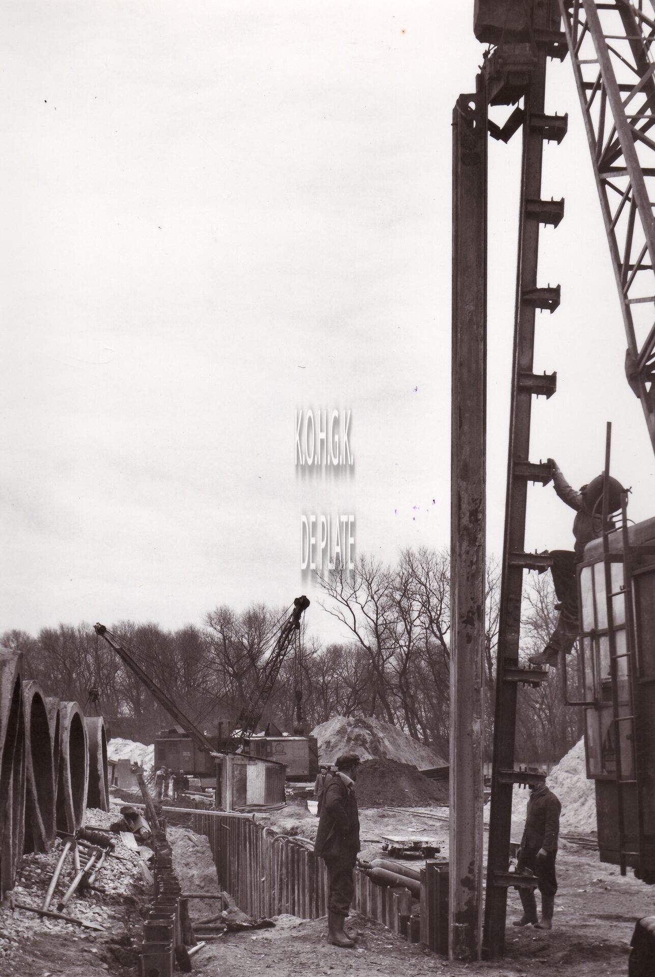 Formaat : 18 x 13 cm. - Inheien van damplanken.