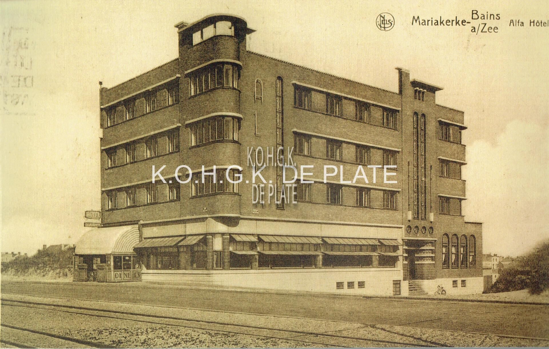 Afdruk. - Formaat : 19 x 29 cm. - Mariakerke-Bains. a/Zee. Alfa Hôtel. - Het hotel werd gebouwd naar de plannen van architect Bernard Christiaens in het begin van de jaren dertig (Omer Vilain)