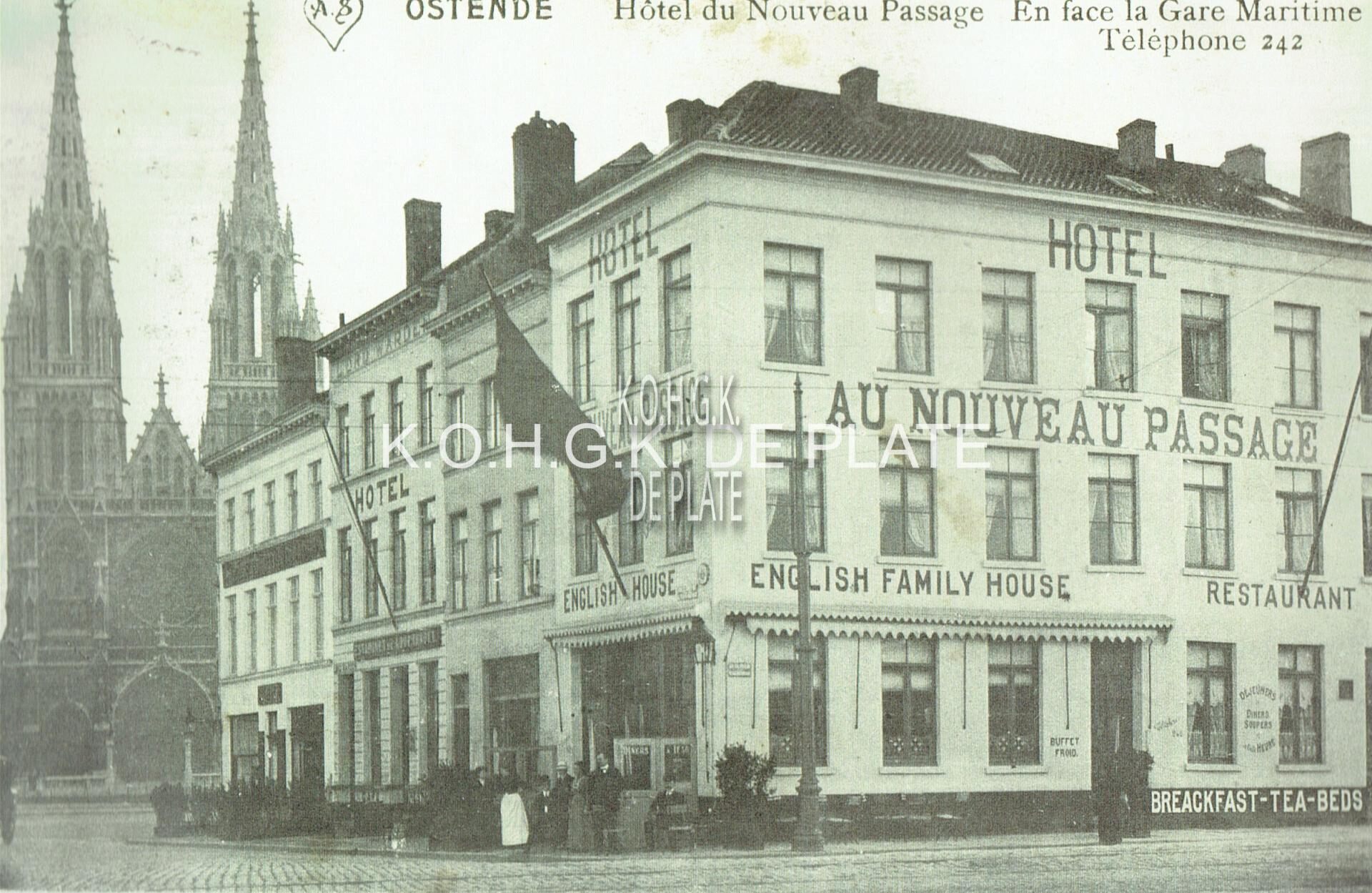 Afdruk. - Formaat 19 x 29 cm. - A.S. [Edit. A. Scheers, Foest-Bruxelles]. - Ostende - Hôtel du Nouveau Passage. En face de la Gare Maritime. -