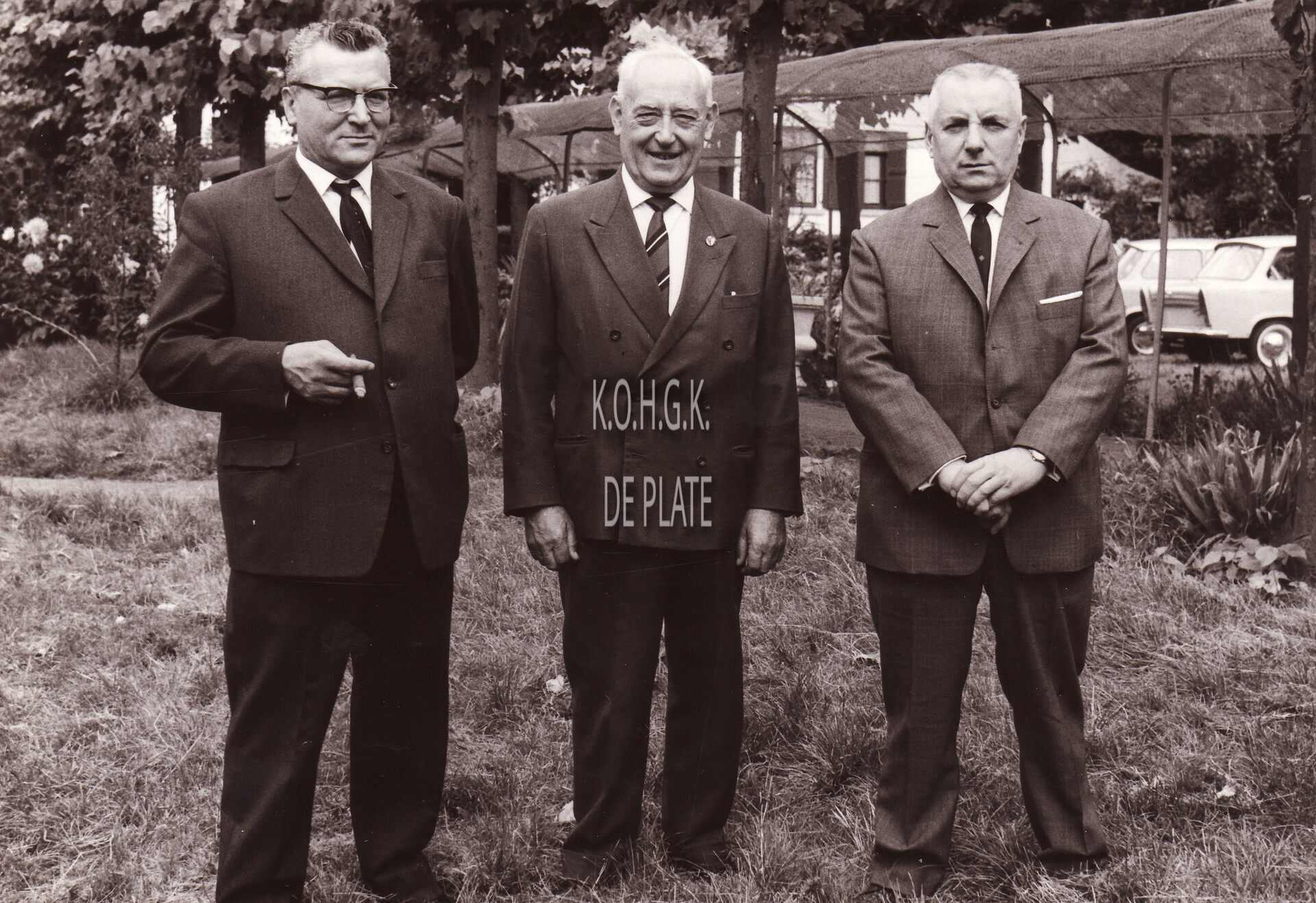 Formaat : 13 x 18 cm. - De inrichters van een autotentoonstelling op het terrein van de Sint-Sebastiaansgilde aan de Leffingestraat. Ingericht door de Verenigde Merkagenten van 25 tot 27 september 1965