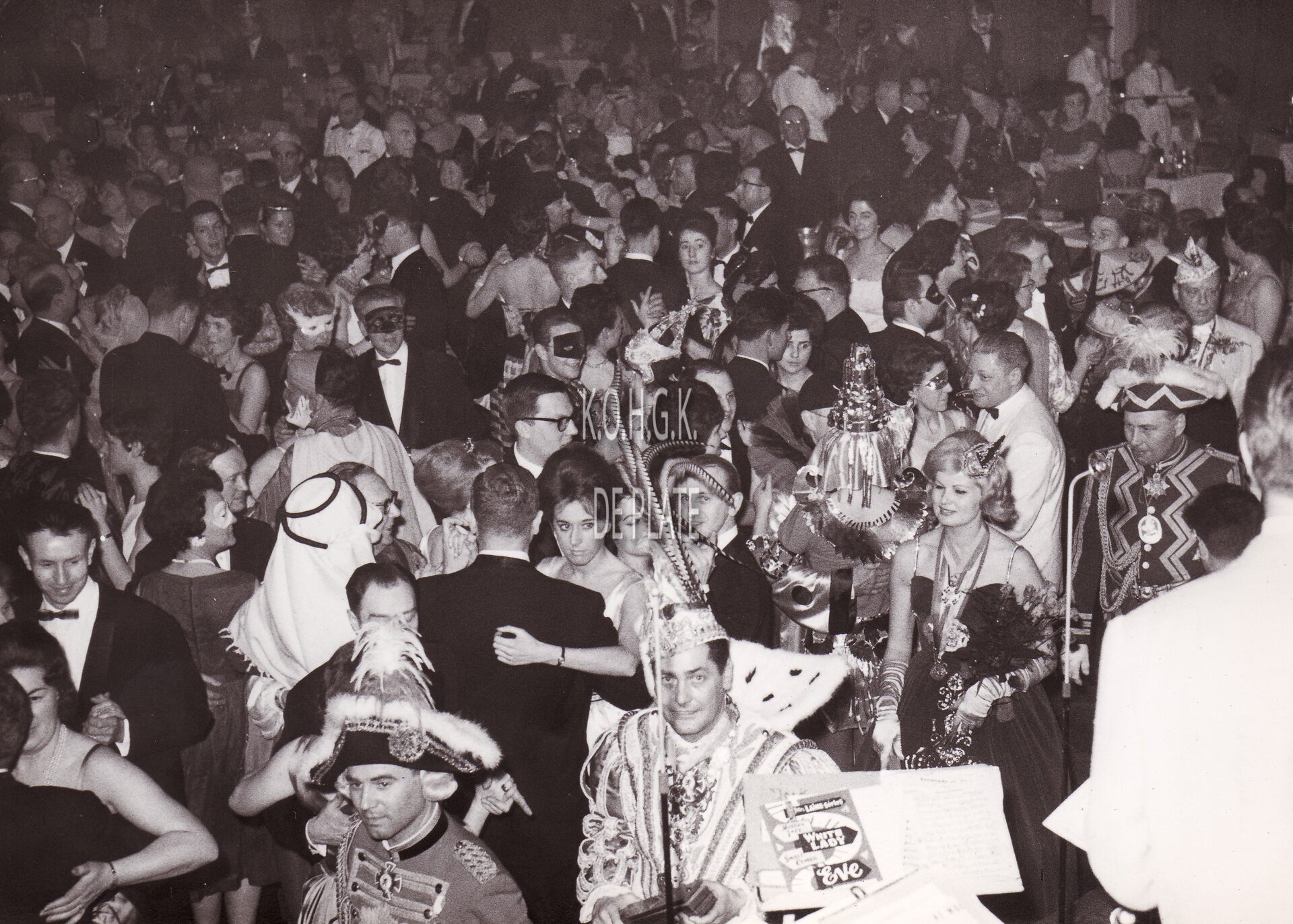 Formaat : 13 x 18 cm. - Prins Carnaval van Düsseldorf en zijn gevolg op het Bal du Rat Mort in het  Casino-Kursaal.