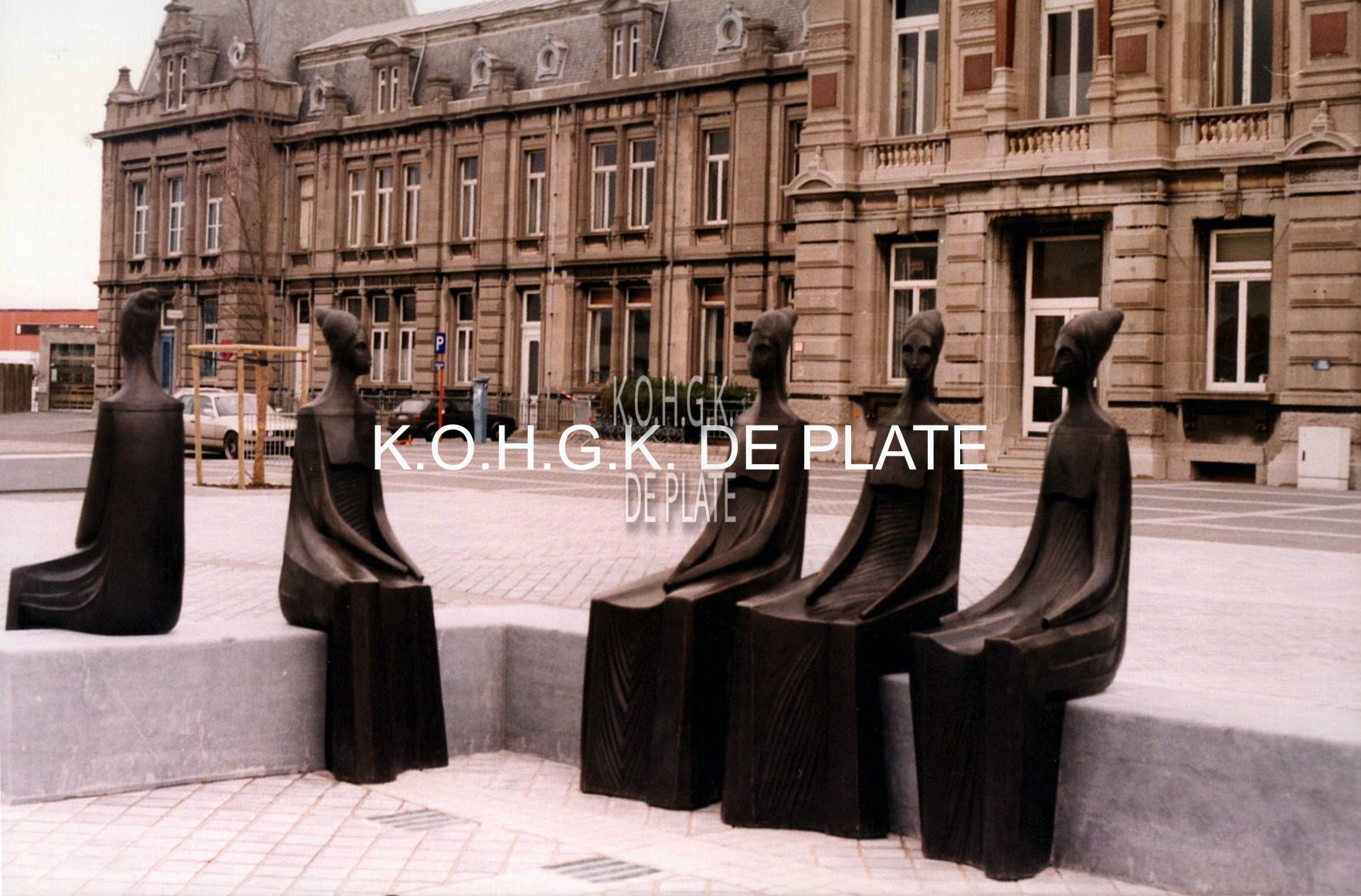 Formaat : 10 x 15 cm. - De beeldengroep "De Vissersvrouwen" van August Michiels ophet Stationsplein