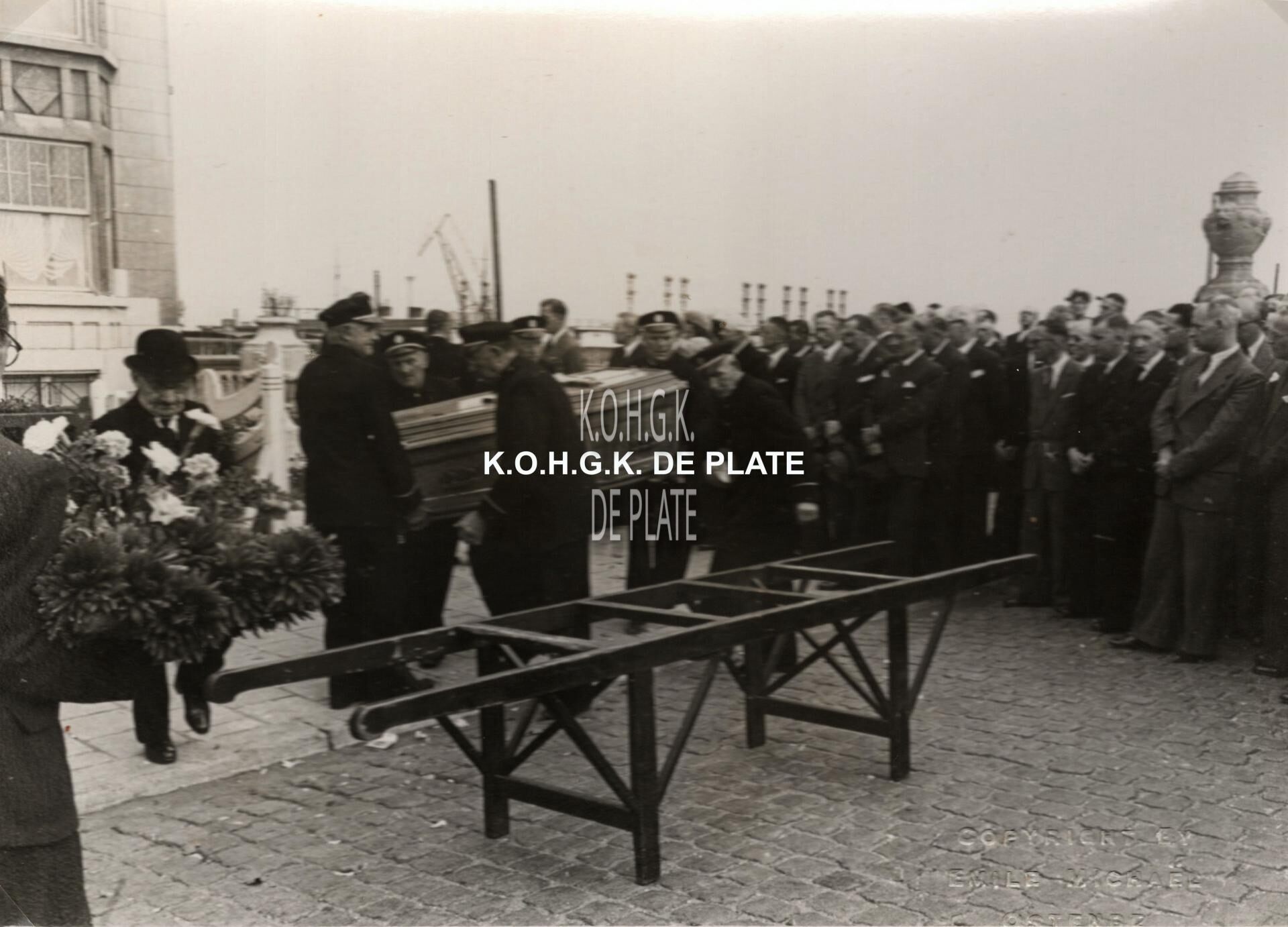 Formaat : 13 x 18 cm. - De lijkkist wordt buiten gedragen uit de woning van August Brunet in de Graaf de Smet de Naeyerlaan 98