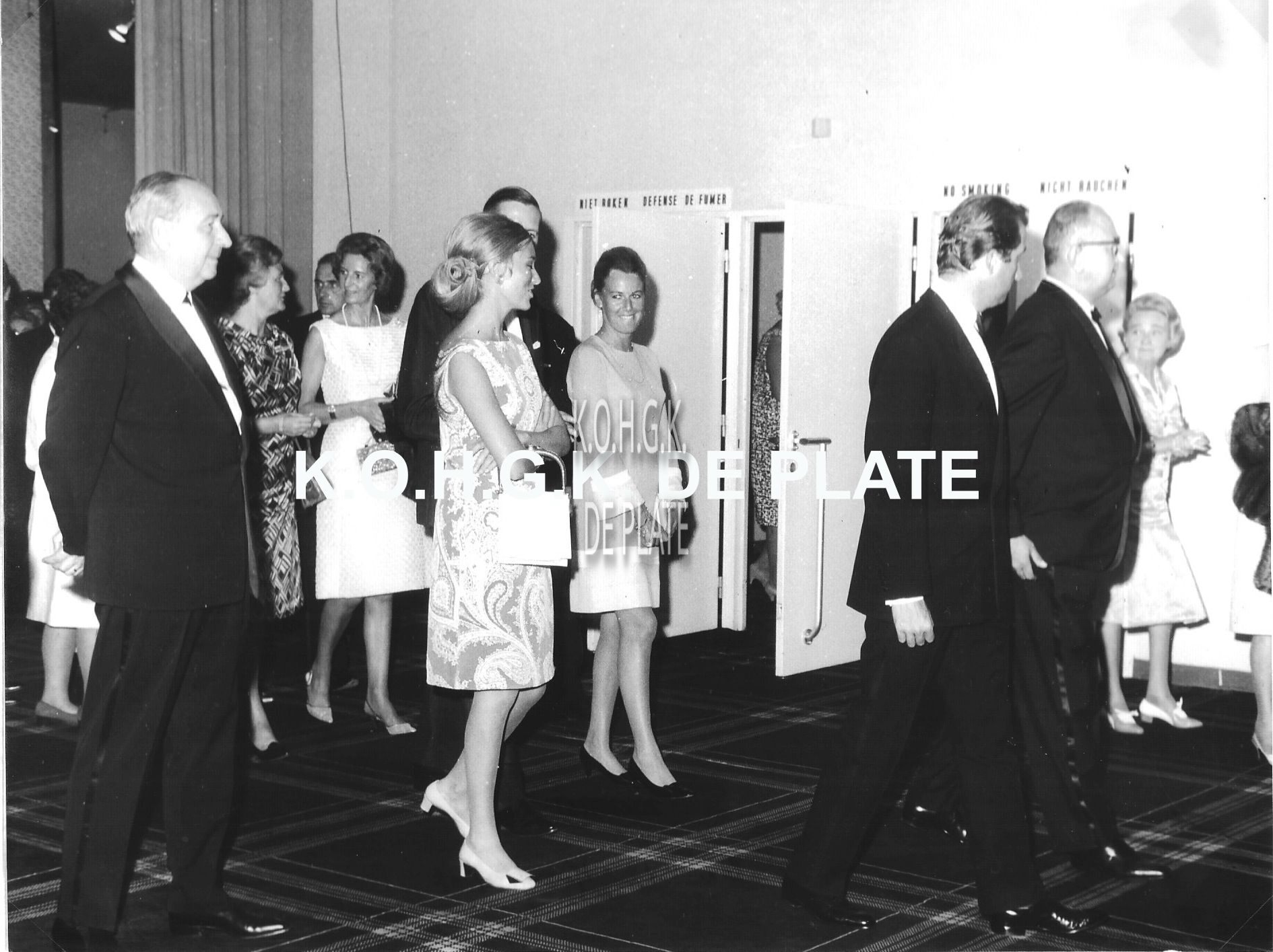 Formaat : 18 x 24 cm. - De prins en Roger De Ramée, directeur van de kursaal. De prinses in gesprek met Jan Piers, minister-staatssecretaris Openbaar Ambt en Toerisme