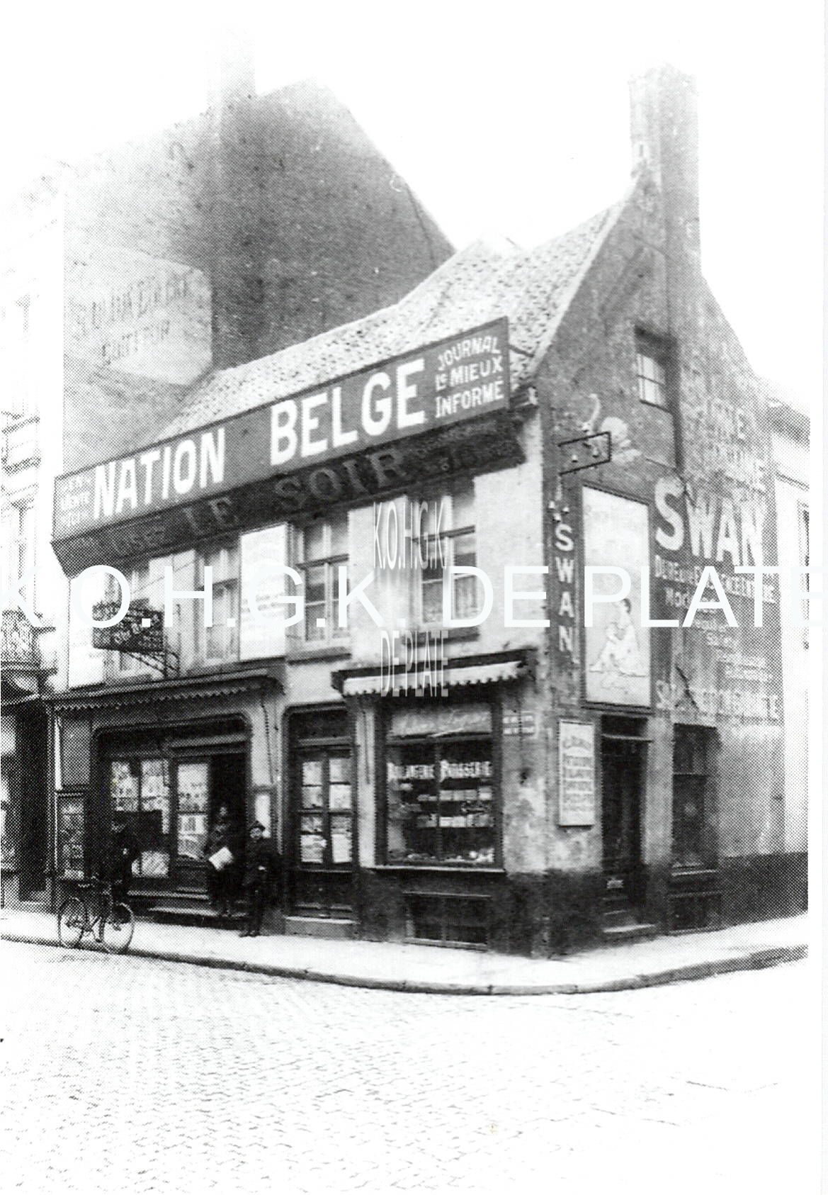 Formaat :10 x 15 cm. - Eerste boekwinkel van Devriendt (rond 1912) op de hoek van de Weststraat (nu Adolf Buylstraat) en de Hertstraat samen met bakkerij-patisserie van Antoine Degraer (ingang in de Hertstraat)