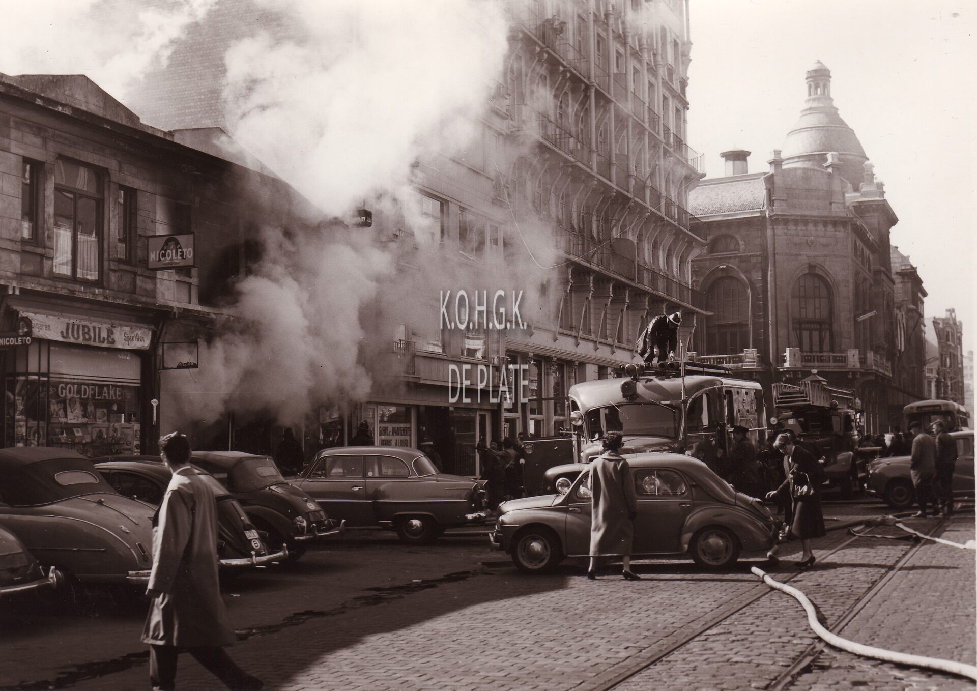 Formaat : 13 x 18 cm. - De brandweer blust een brand in een zaak in de Van Iseghemlaan tegenaan de Vlaanderenstraat.