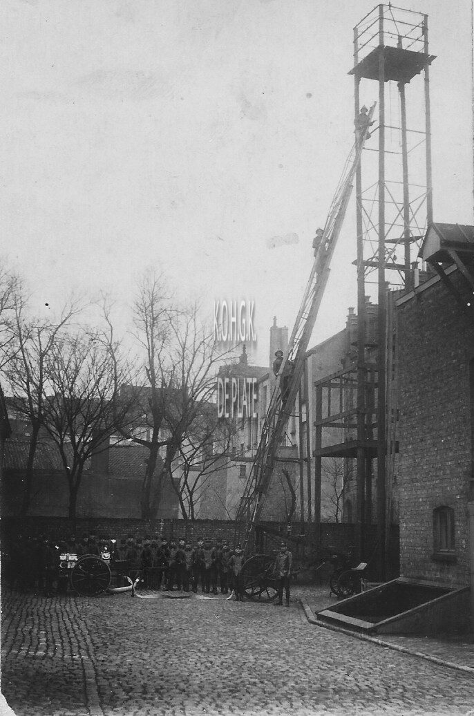 Foto : Brandweer. Oefening op de koer van de brandweerkazerne