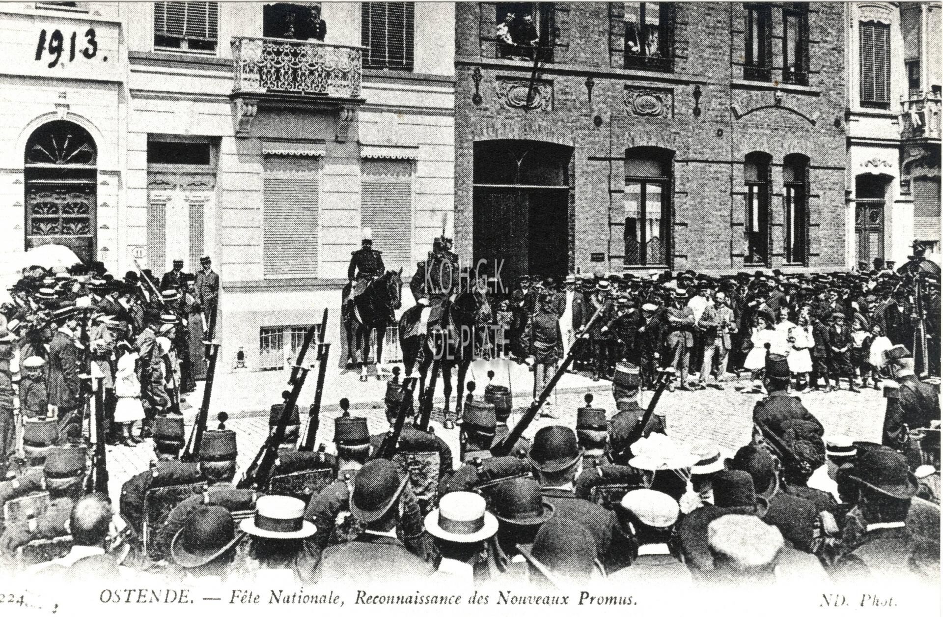 Omschrijving Afdruk van postkaart, formaat : 9 x 14 cm. - Ostende - Fête Nationale, Reconnaisance des Nouveau Promus. Trefwoorden FOTO'S BURGERWACHT Plaatskenmerk ARCHIEF 202 08-09 POSTKAARTENARCHIEF Inventarisnummers 2021/1989 1913 Collectie Fotoarchief De Plate Herkomst ELLEBOUDT THIERRY Print