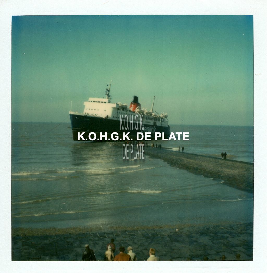 Foto : Caferry "Vortigern" gestrand op een golfbreker