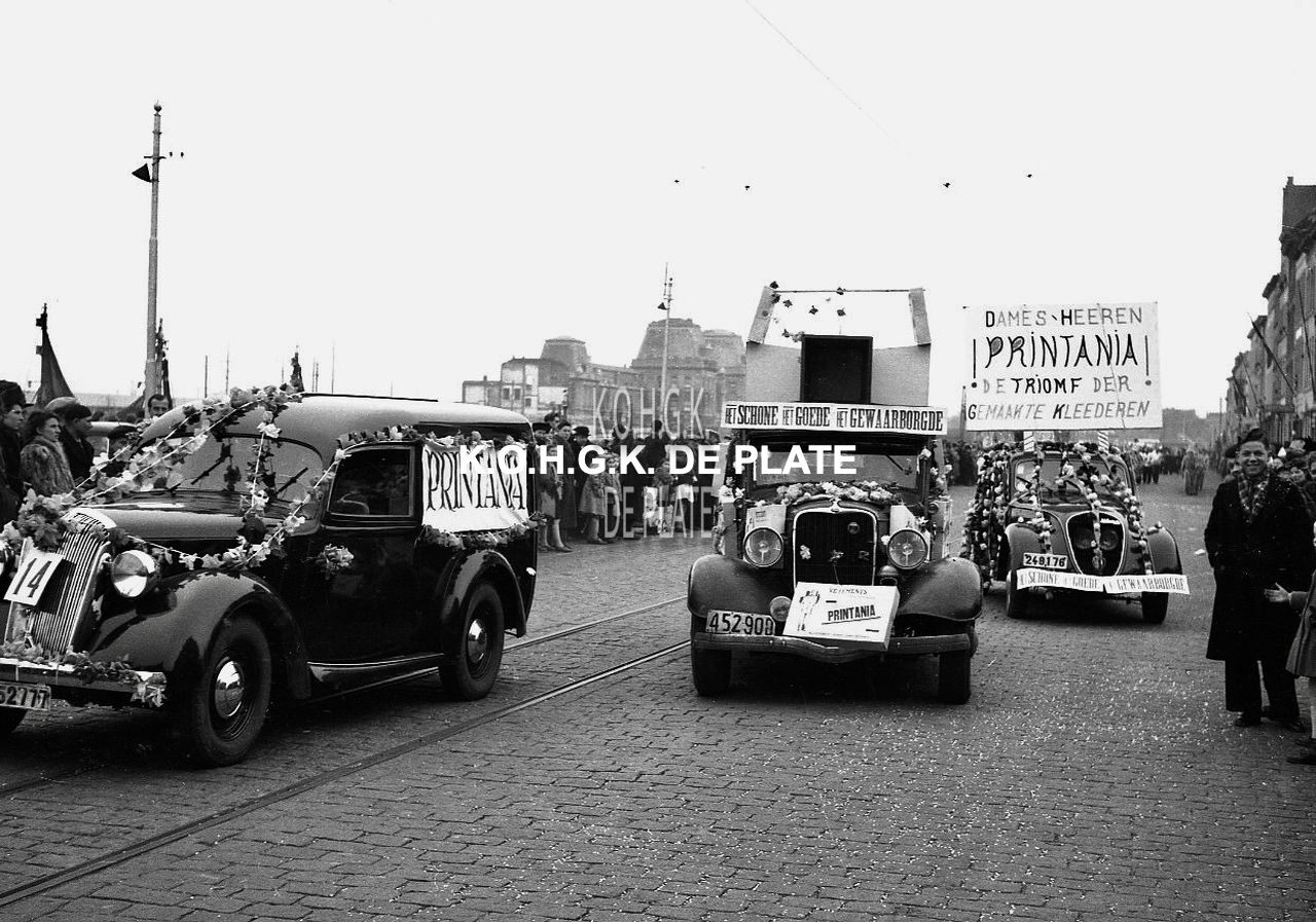 Negatief : 4 x 6,5 cm. - De auto's van de firma Printania in de publiciteitskaravaan op de Visserskaai