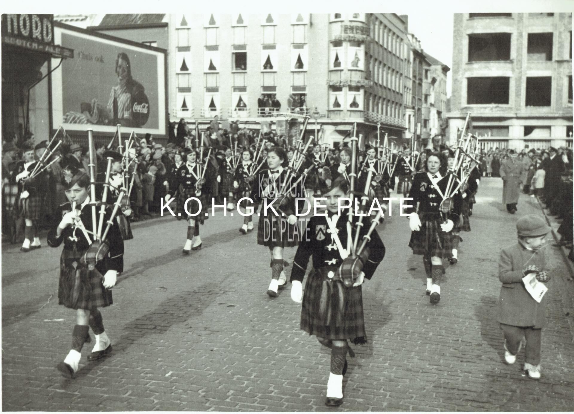 Vergroting. - Formaat : De "Ostendia Schotten" op het Wapenplein. Reclamepaneel voor "Coca Cola". Op de hoek van de Louisa- en Brabantstraat "Grand Hotel Central"