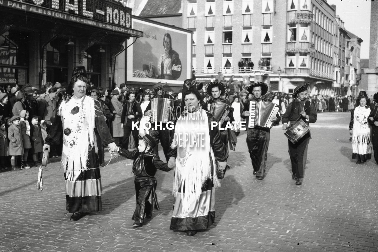 Formaat : 12,5 x 19 cm. - De folkloregroep van de supportersclub KVGO West op het Wapenplein nabij de Royal Nord