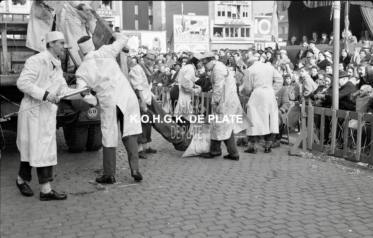 Negatief : 6 x 9 cm. - Groep 27 : De Oostendse studentenvereniging "De Zandloper" met hun praalwagen "De Geneeskunde".