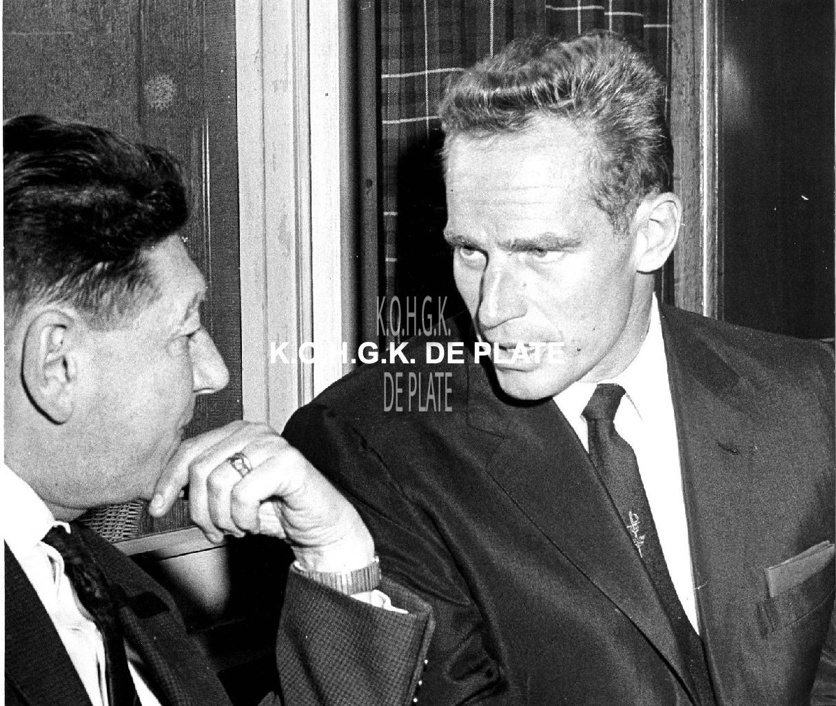 Formaat : 17 x 20 cm. - Charlton Heston in gesprek met Edward Lauwers, journalist en hoofdredacteur van de Zeewacht.