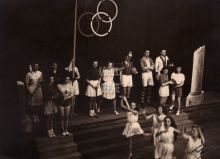 Tweede bedrijf : tafereel 4 : "Ballet der sporten" : scene uit de Oostendse Revue 1948,sportief Oostende wordt voorgesteld.