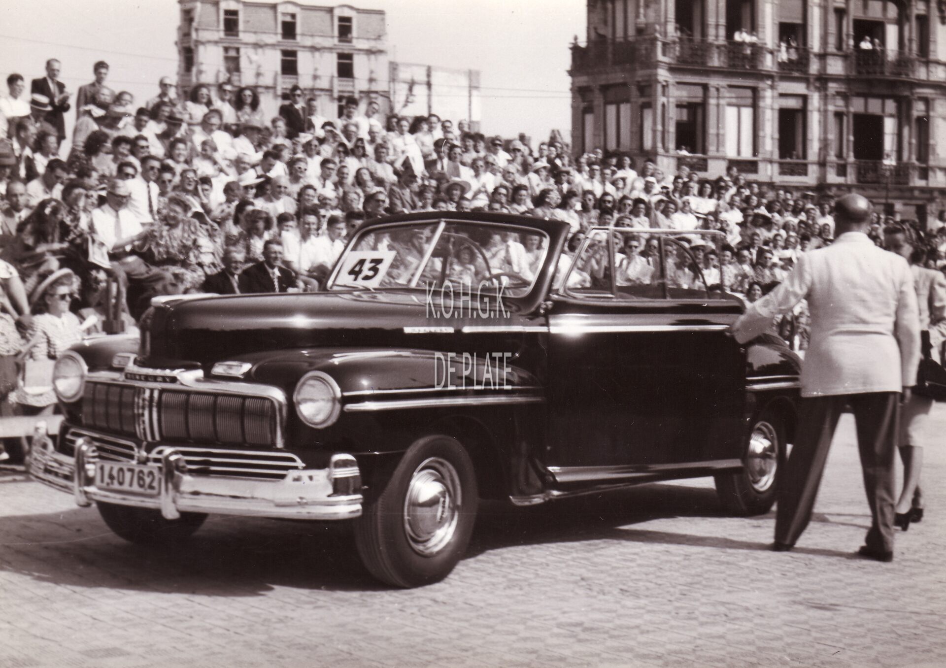 Formaat : 13 x 18 cm. - Elegantiewedstrijd voor auto's op de Albert I-Promenade bij Petit Nice. Een deelnemende Mercury.