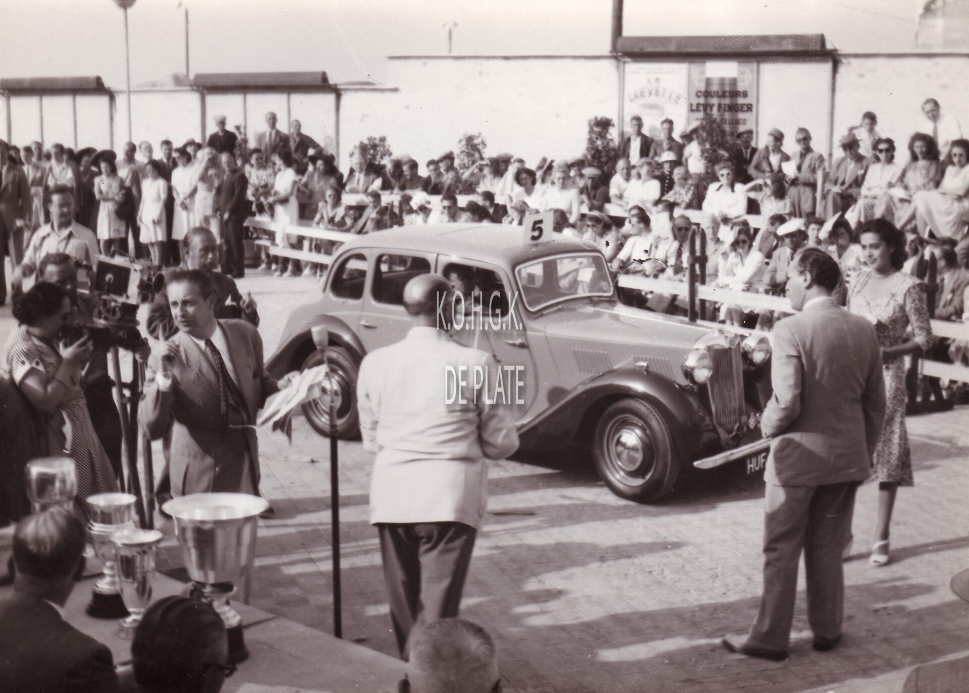 Formaat : 13 x 18 cm. - Wedstijd voor auto's op de Albert I-Promenade. Een deelnemer passeert de jury aan Petit Nice.