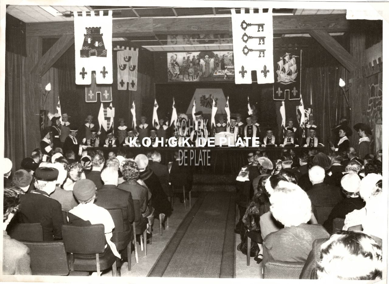 Formaat : 13 x 18 cm. - Intronisatie van de nieuwe ridders van de "Confrerie van de Rat Mort" in de ridderzaal van het Casino-Kursaal.