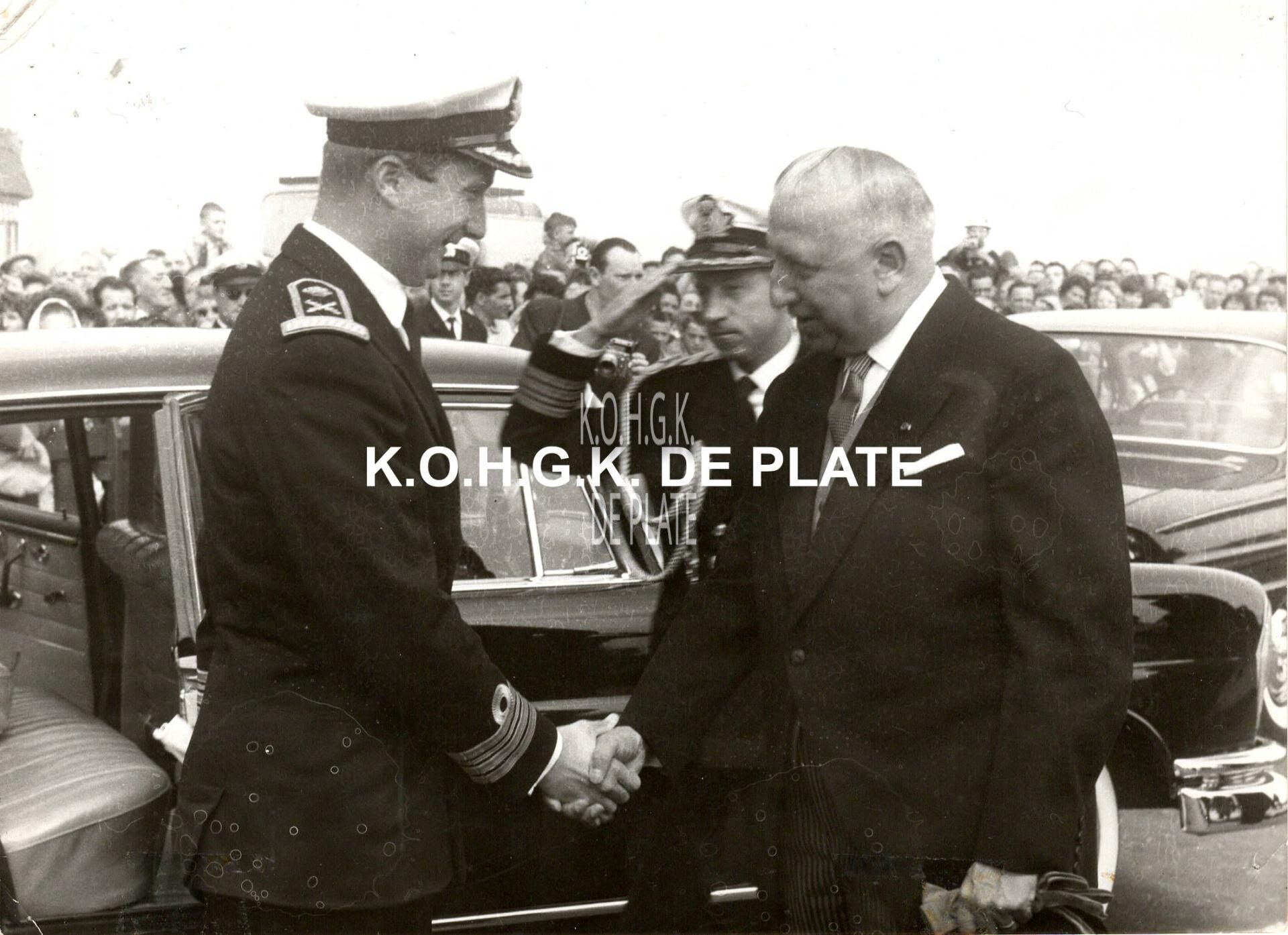 Omschrijving Formaat : 13 x 18 cm. - Prins Albert wordt begroet door minister P.W. Segers en fregatkapitien Julius Van Dyck. Trefwoorden FOTO'S DAG VAN DE ZEEMACHT MILITAIRE PLECHTIGHEDEN ALBERT II (KONING DER BELGEN) SEGERS PAUL-WILLEM (1900-1983) (POLITICUS) VAN DYCK JULIUS (DIVISIEVICE-ADMIRAAL ZEEMACHT) Plaatskenmerk ARCHIEF 202 01-07 ARCHIEFDOOS KONINGSHUIZEN Inventarisnummers 2020/2603 Collectie Fotoarchief De Plate Herkomst EYLAND FREDDY Print